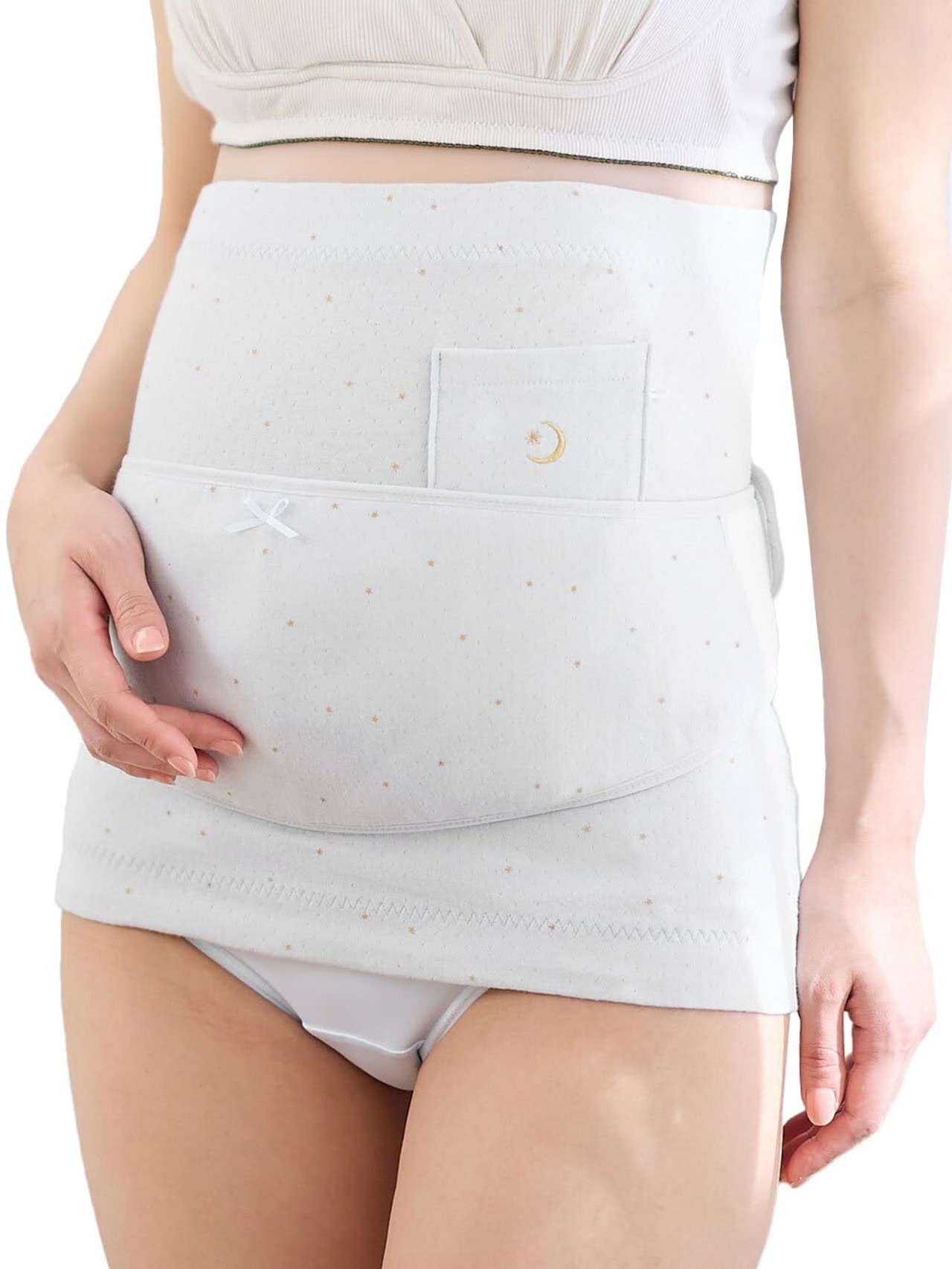 【腹巻とベルトのセットで、妊娠初期から後期まで長く使えます】先輩ママの意見を盛り込んだ腹巻タイプのコルセット+補助ベルトのセットです。コルセットは上下にパワーネットが入っているのでズリ上がりにくいのがポイント。ワンポイント刺しゅうが入ったポケットにはお守りを入れることができます。さらりとした肌触りと通気性の良さが魅力の綿100%素材。補助ベルトは面テープでサイズ調整が可能です。