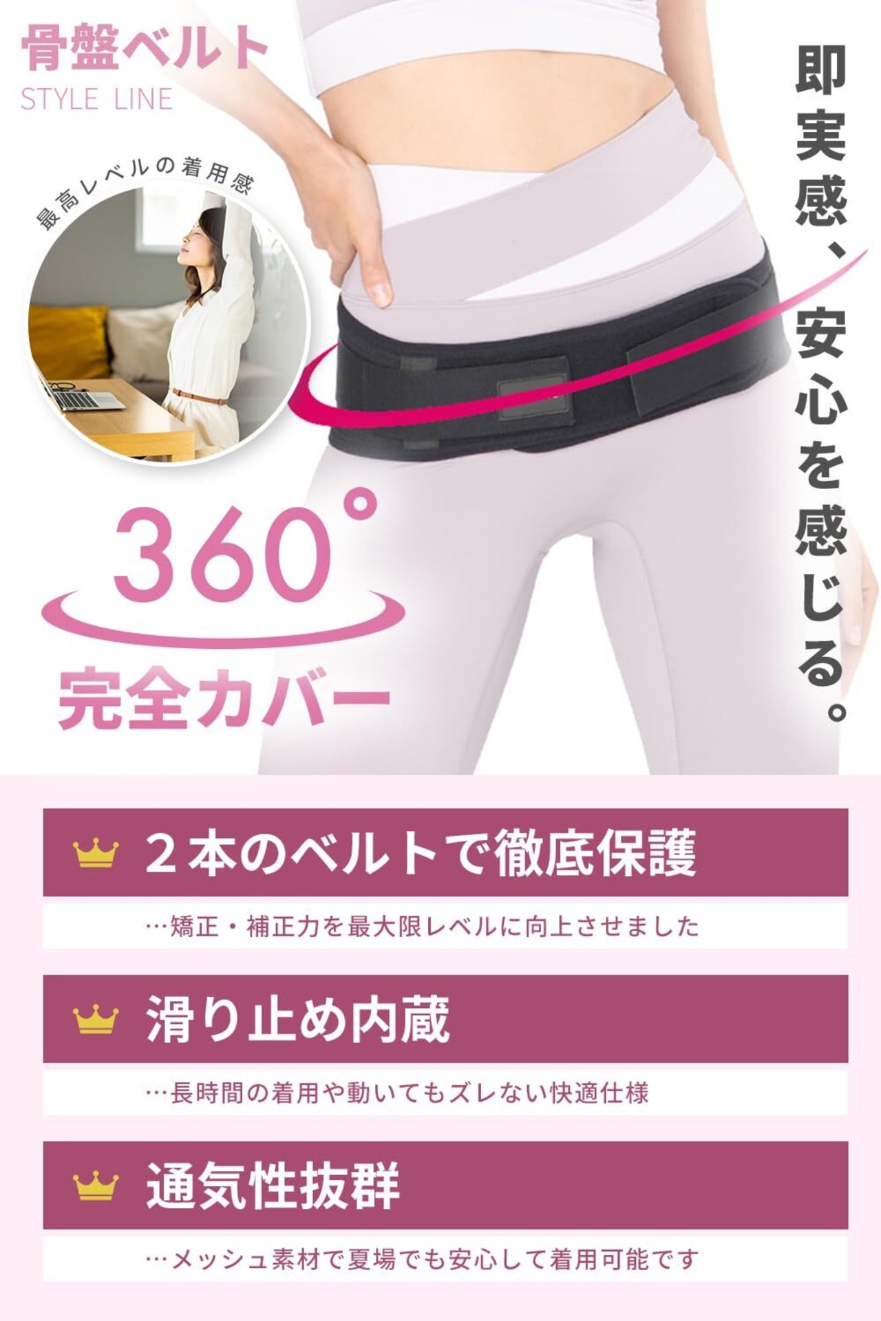 [QQOLi] 【着用する骨盤調整】 骨盤ベルト 二重ベルトメッシュ素材 滑り止めズレない コルセット 腰用 加圧式 産後 ヒップアップ 立ち仕事 フリーサイズ