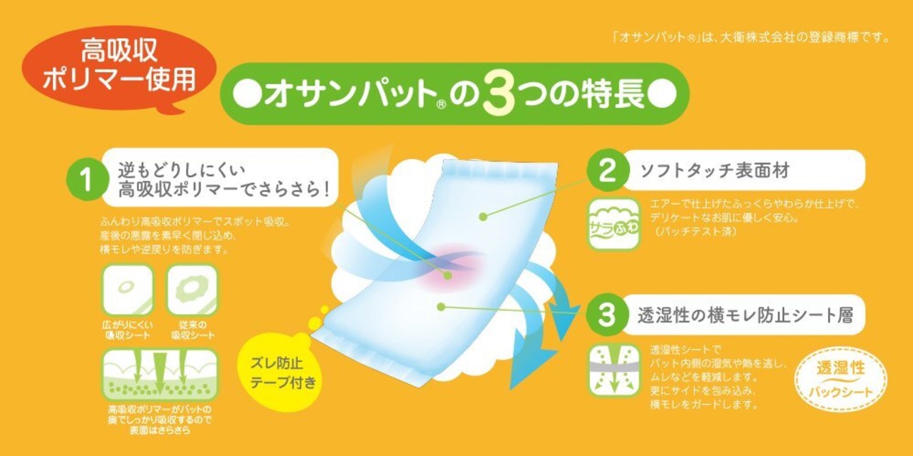 高吸収ポリマーで、横モレや逆戻りさせず、いつもサラサラで快適なオサンパット。