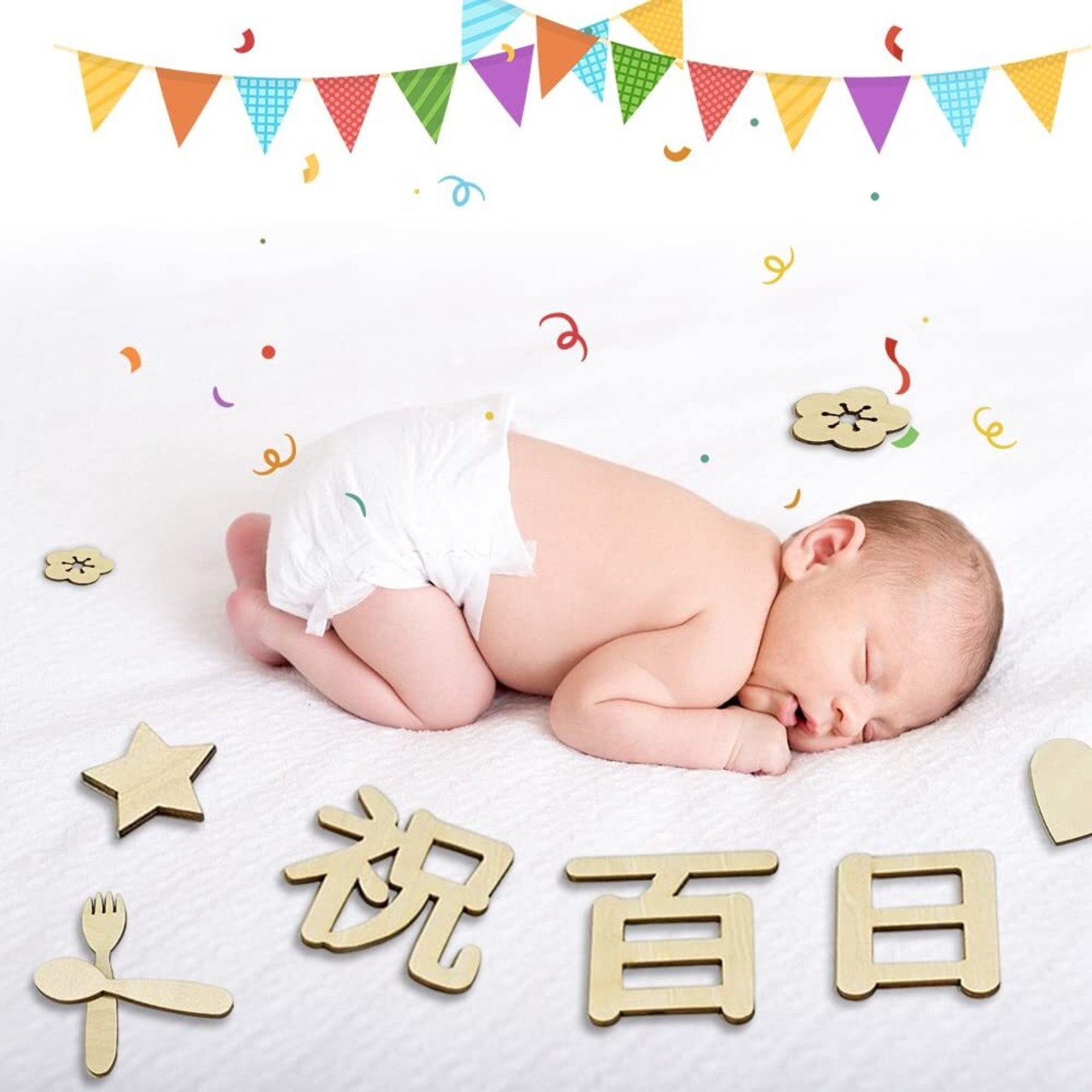 Renjzle 百日祝い 木製レターバナー 12枚セット お食い初め・誕生日・成長記録に 100日祝い 飾り ガーランドお誕生日 写真道具 赤ちゃんの天然寝相アート 記念写真に 出産祝いに最適 (A-12個セット)