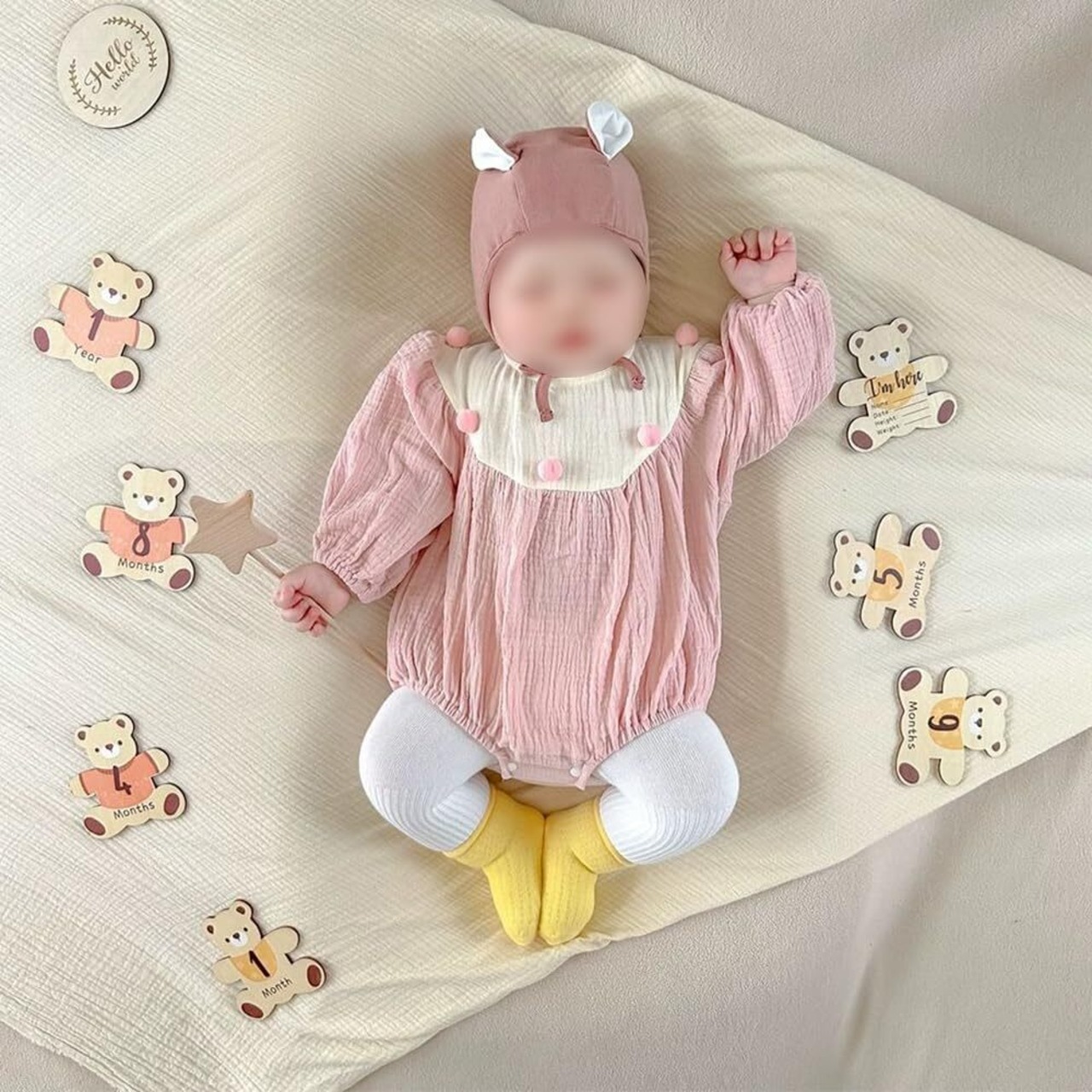 2. 独特の7枚のかわいいくまの形のカードのデザインは、月齢写真を撮るたびに楽しみをもたらします。多様なデザインにより、毎月の月齢写真に異なるハイライトをもたらし、赤ちゃんの成長の瞬間が鮮やかに記録されます。