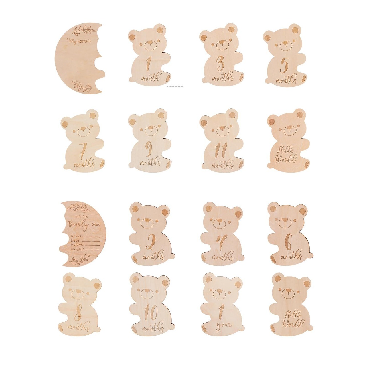 Promise Babe 月齢フォト ベビーマンスリーカード 8枚セット クマ形 ウッド 天然木材 ニューボーンフォト 写真道具 成長記録 新生児 赤ちゃん 出産祝い