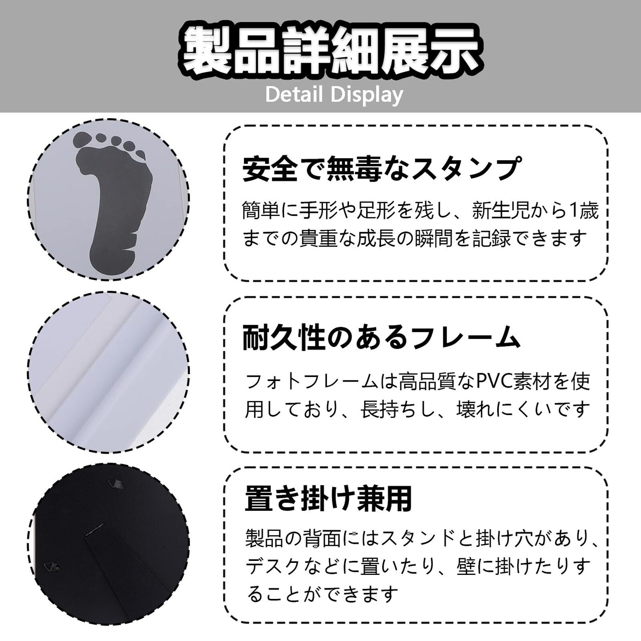 この「ベビーフォトフレーム 手形 足形キット」は、赤ちゃんやペットの成長記録を形に残すための完璧なアイテムです。簡単に操作でき、赤ちゃんやペットの手形と足形を簡単に保存でき、家族の大切な記念品として飾れます。出産祝い、1歳の誕生日ギフト、内祝いなど、贈り物にも最適です