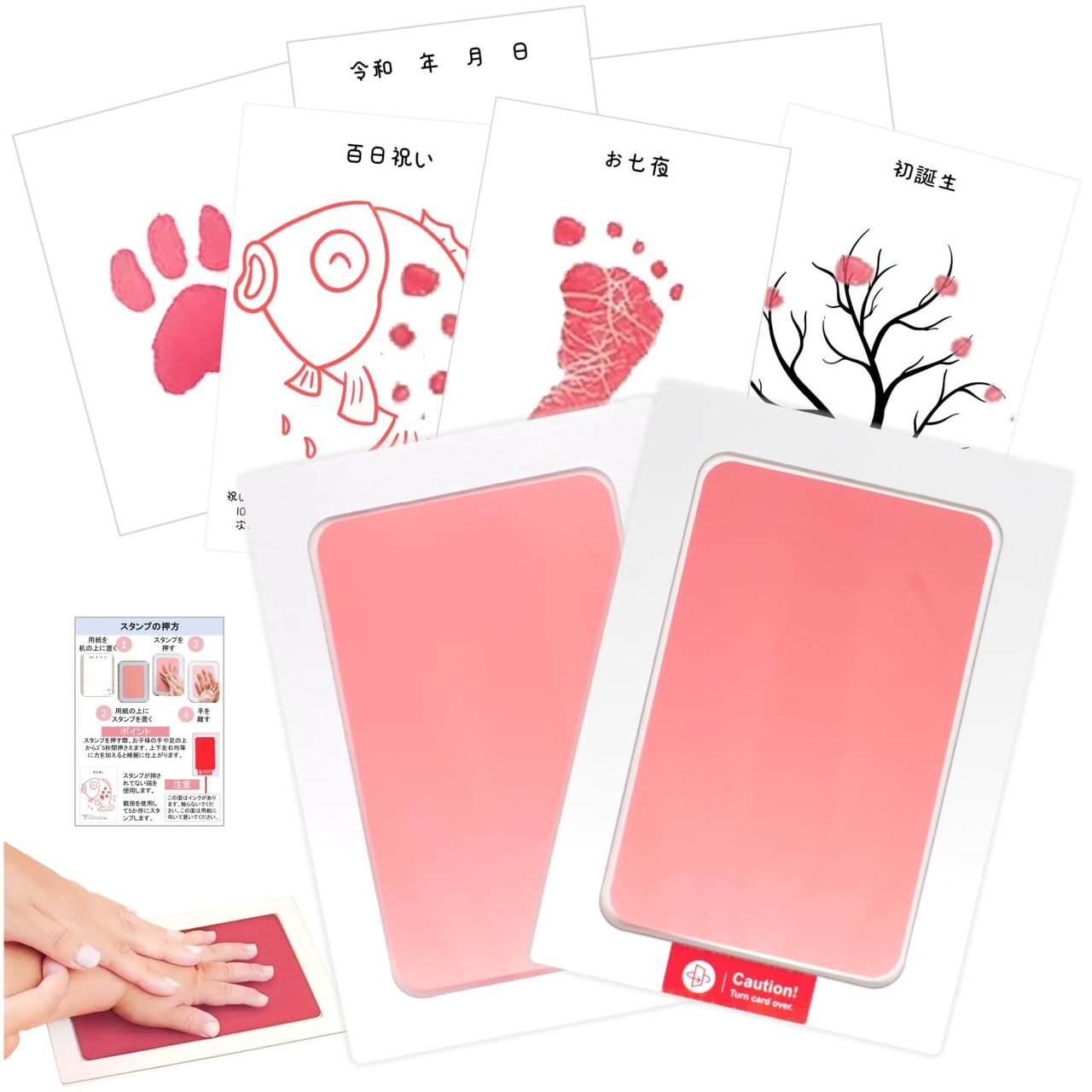 MYFEELGAGA 手形スタンプ 赤ちゃん 汚れない 手形足形 新生児 手形 即開封 命名書 お七夜 百日祝い 初誕生 専用デザイン 出産祝い プレゼント ベビー用品 ベビーグッズ ピンク
