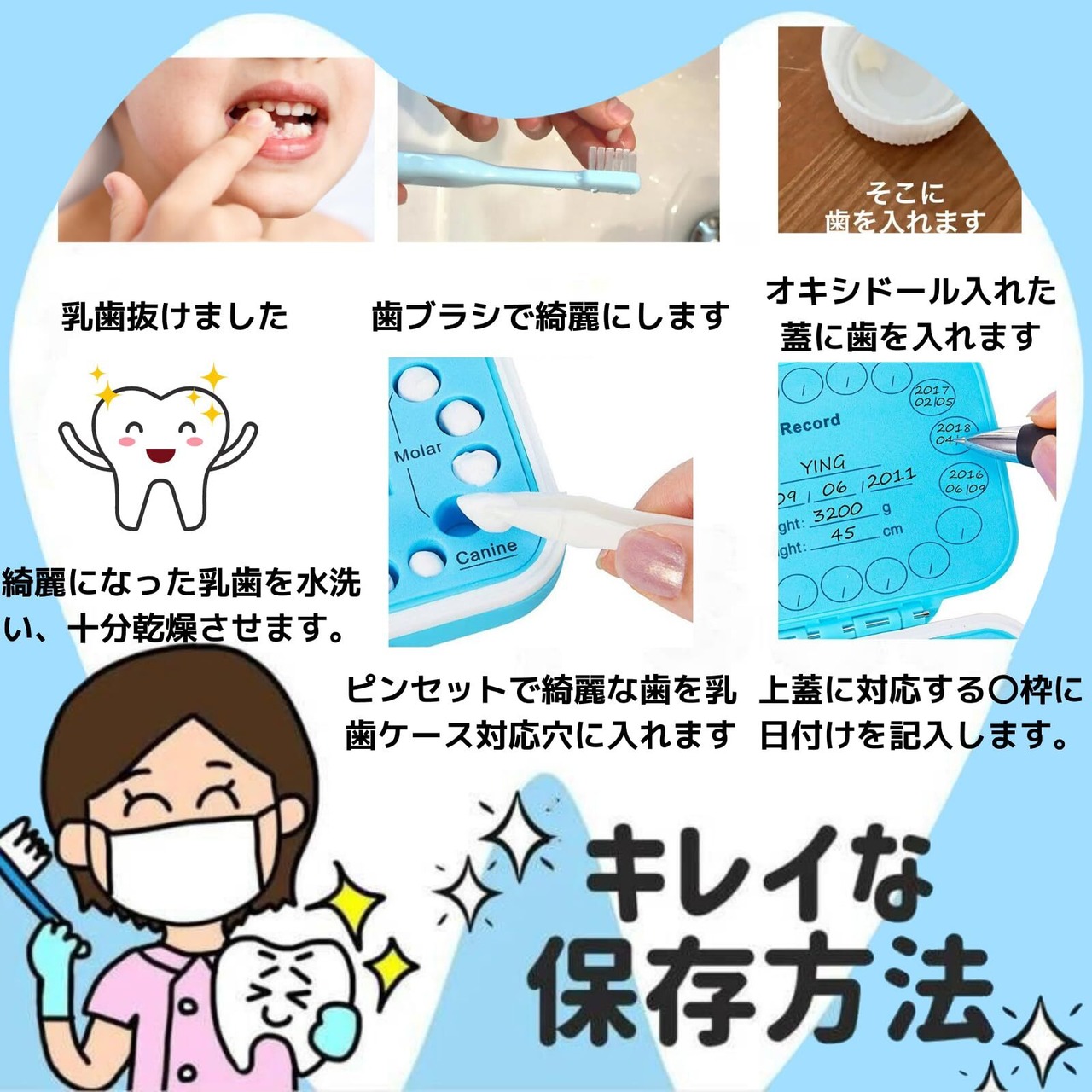 4.【ペンで記録に残る】:乳歯が抜けた日付をボールペンで記入できるものは、思い出をより詳細に保存できる乳歯入れケース。自然に抜けたものでも、歯医者で抜歯したものでも、一つ一つの思い出の記録は後になって大切な宝物になるかもしれません。
