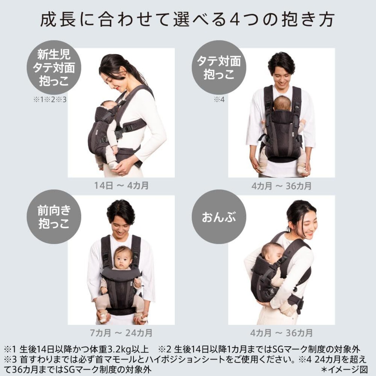 【規格】SG (タテ対面抱っこの生後 14 日以降 1 カ月まで、 24 カ月を超えて 36 カ月までは SG マーク制度の対象外です。)
