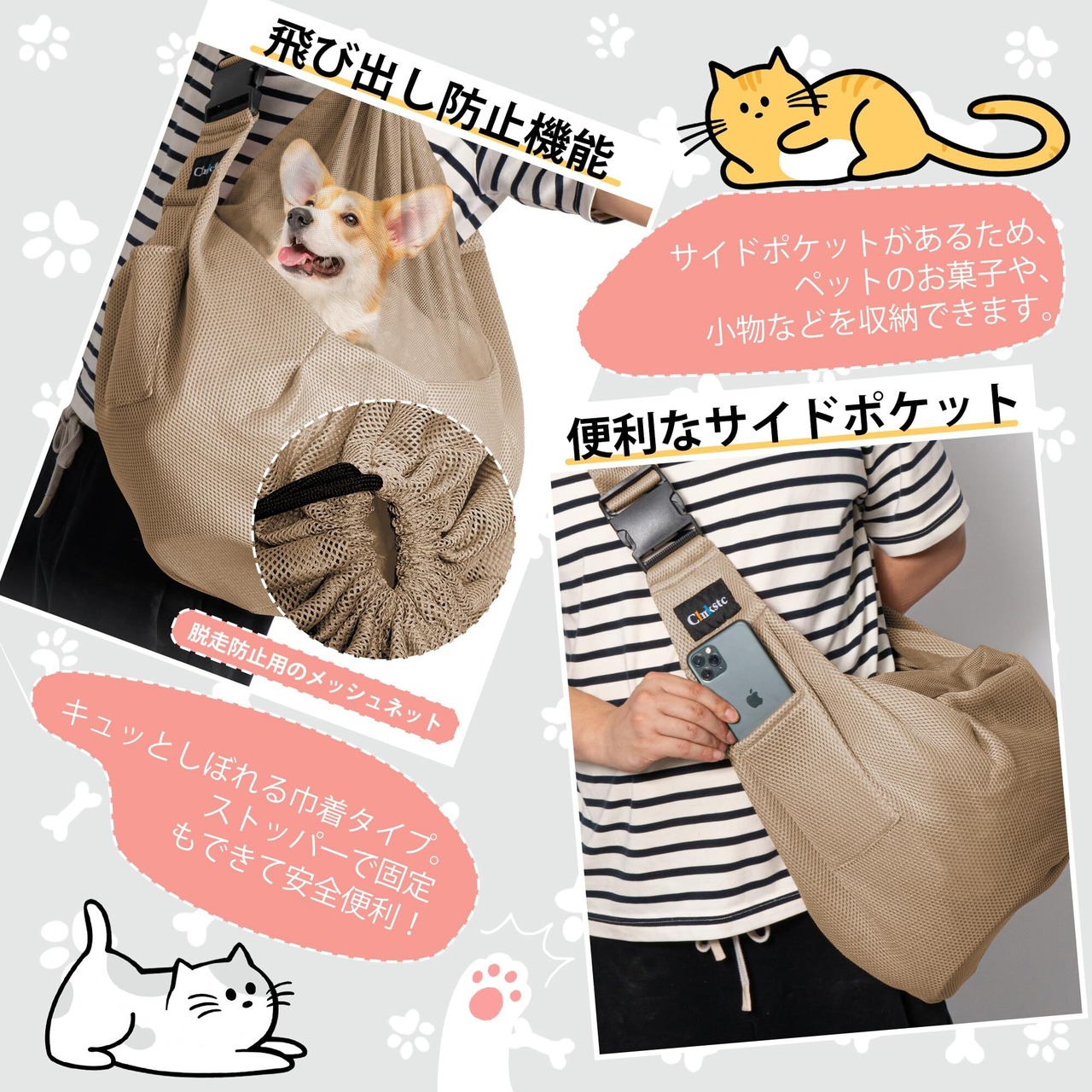 2025夏 CHMKSTC 犬 抱っこ紐 ペットスリング ペット バッグ キャリーバッグ ドッグスリング 猫バッグ 肩パッド メッシュネット 調節可能 ポケット付き 斜めショルダーバッグ メッシュ生地 通気性 お出かけ抱っこ 軽量 お出かけ/散歩/ドライブ/旅行 犬猫兼用 小型犬/中型犬 ペット用品 カーキ