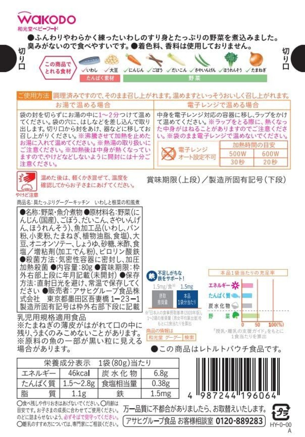 【和光堂】 具たっぷりグーグーキッチン いわしと根菜の和風煮 80g×12袋セット [12か月頃から] 鉄分入り