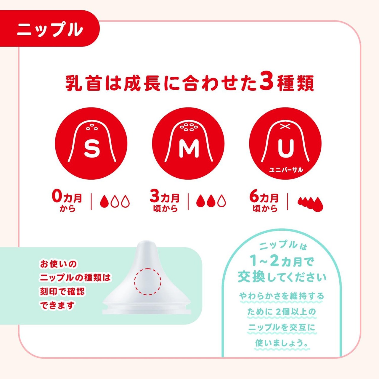 お使いのニップルの種類は刻印で確認できます。