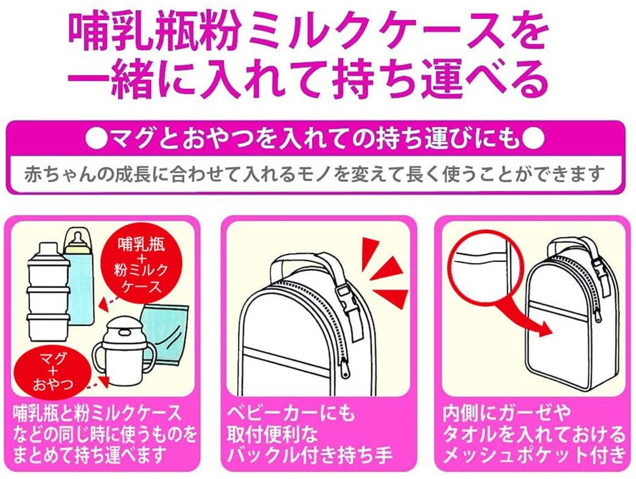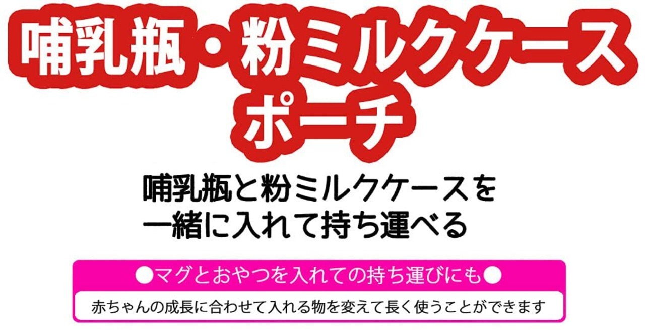 ミルク作りに必要な哺乳瓶と粉ミルクケースを一緒に入れることができるポーチ