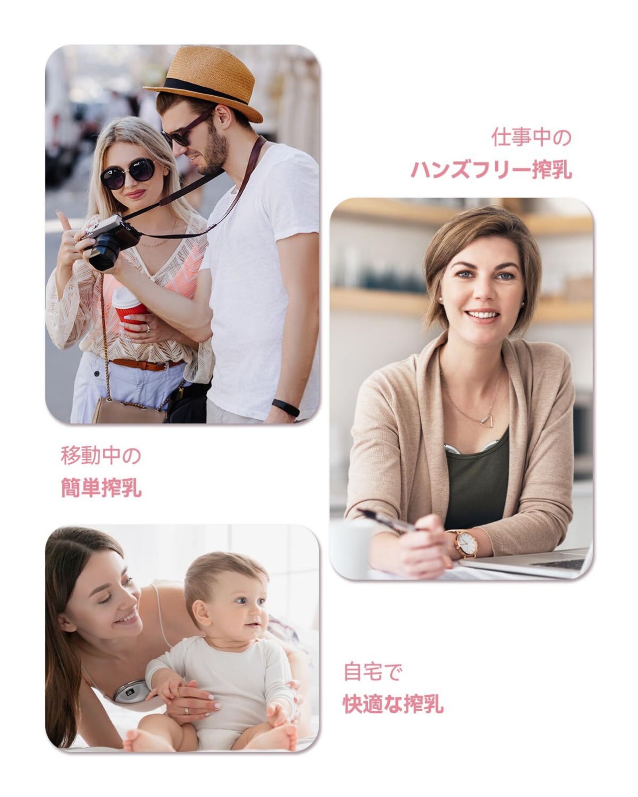 【自然な吸引を模倣したデザイン】この革新的な電動さく乳器は、赤ちゃんの自然な吸引動作をシミュレートし、痛みのないさく乳体験を提供し、母乳分泌の増加を促進します。人間工学に基づいたデザインで、胸にぴったりフィットし、快適な使い心地をします。