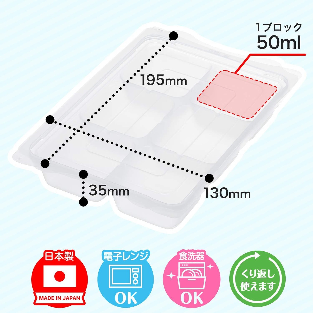 レック(LEC) 日本製 離乳食 フリージングトレー L (50ml・6ブロック× 2枚入) 電子レンジOK 食洗機OK A00117