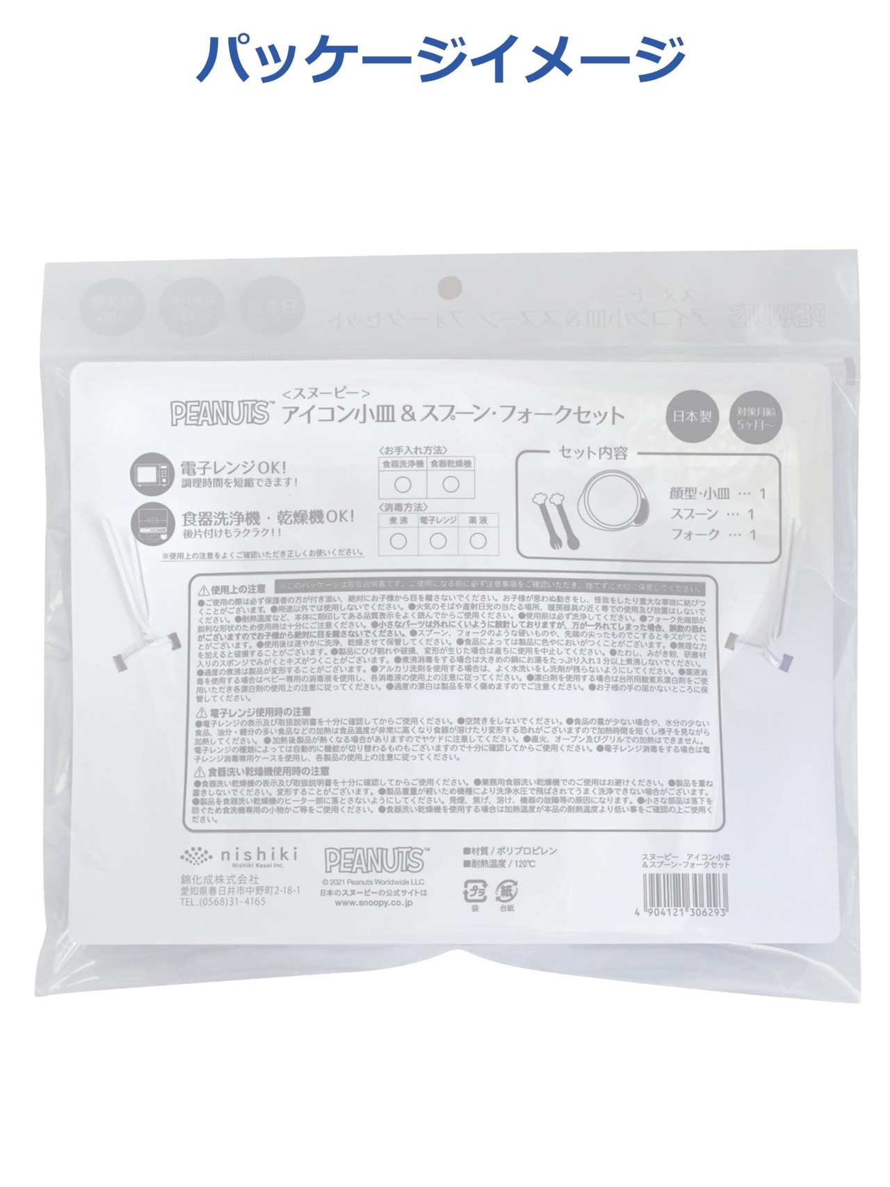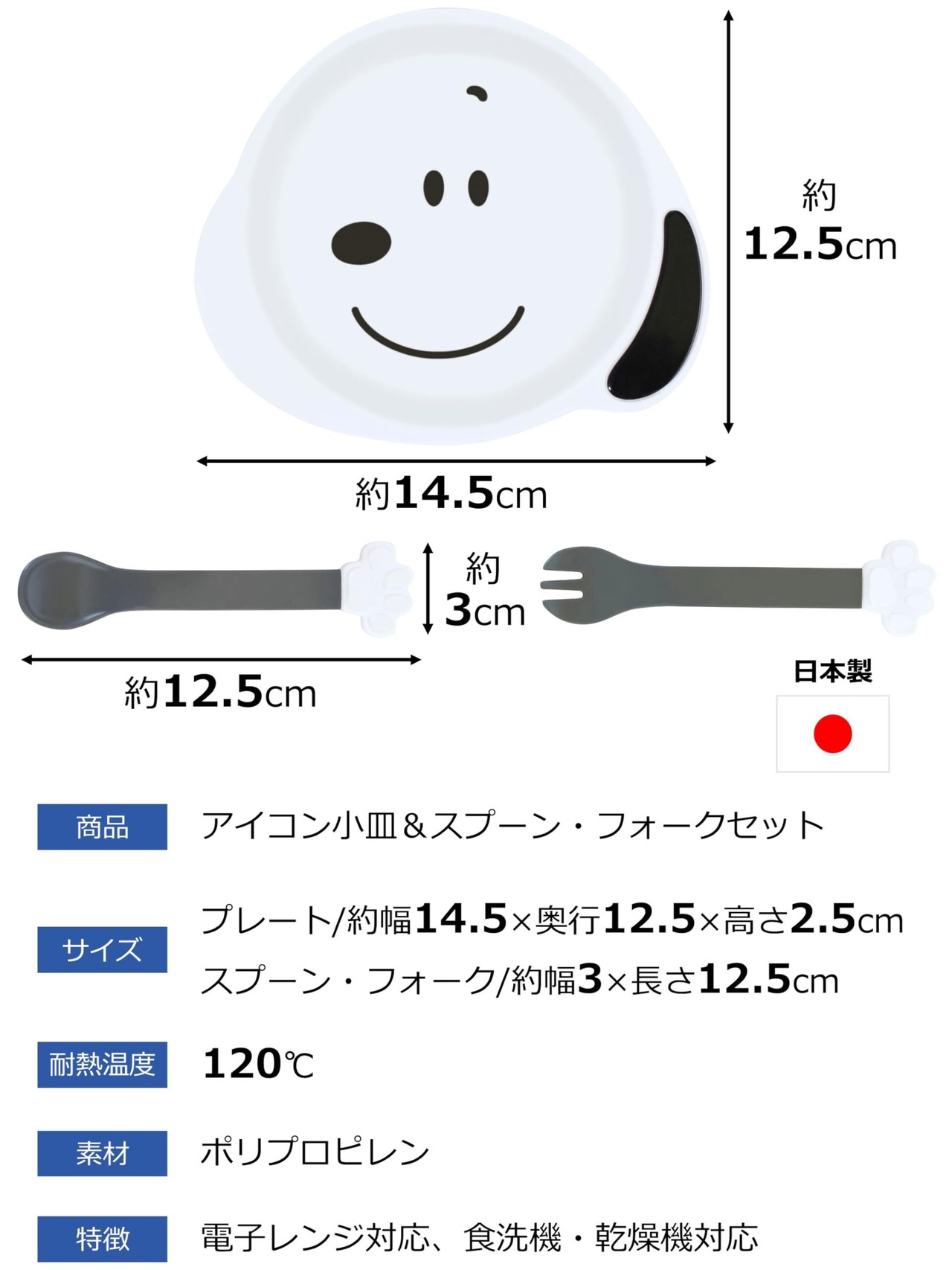 錦化成 お子様プレート スプーン フォーク付き スヌーピー ベビー食器 離乳食 日本製 電子レンジ対応 食洗機・乾燥機対応 約14.5×2.5×12.5cm 小分けにできる