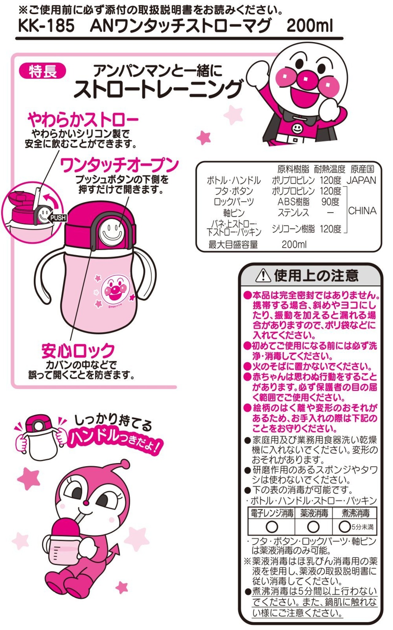 レック アンパンマン ワンタッチ ストローマグ 200ml