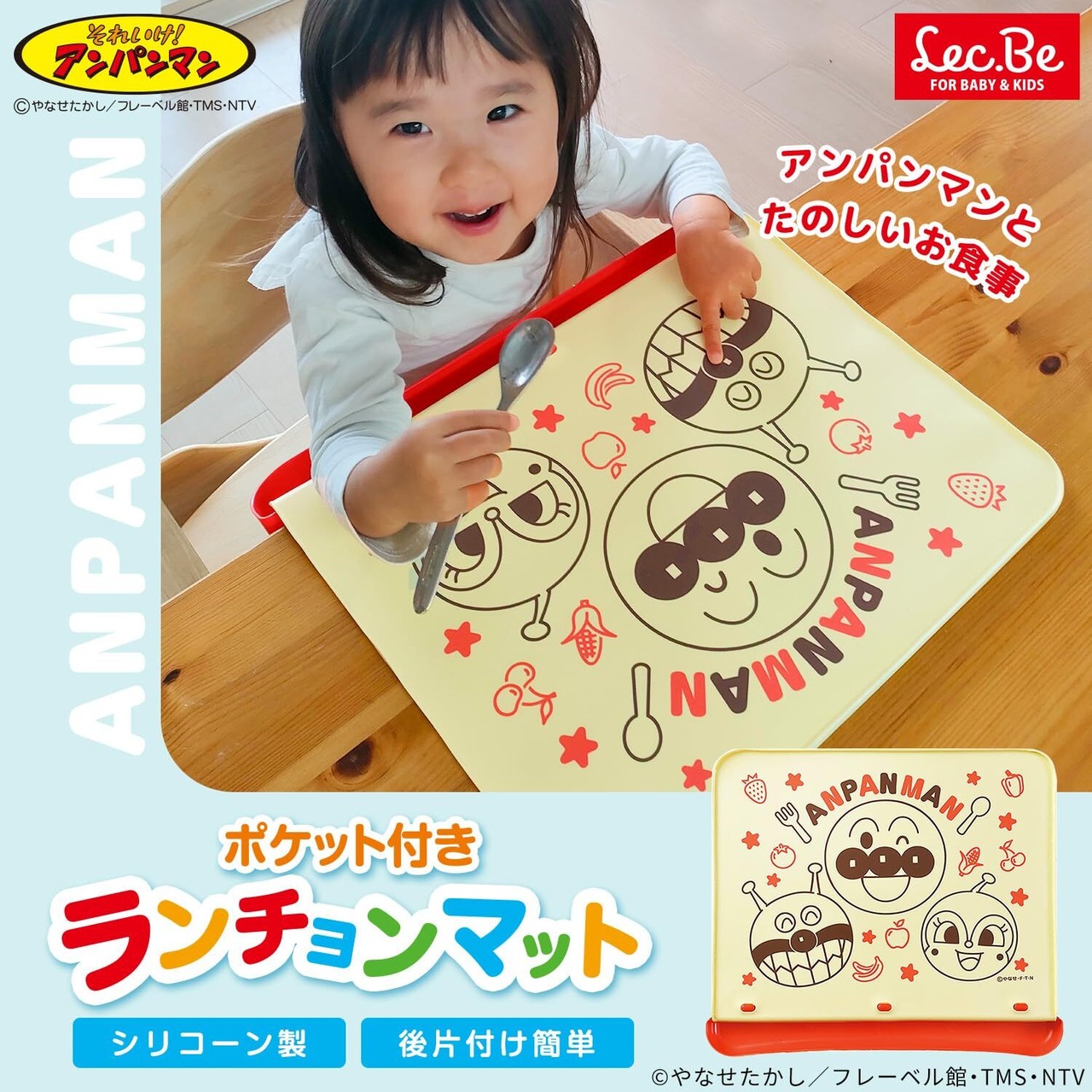レック アンパンマン ポケット付き シリコーン ランチョンマット/食べこぼし キャッチ/液こぼしも防ぐフチ付き /