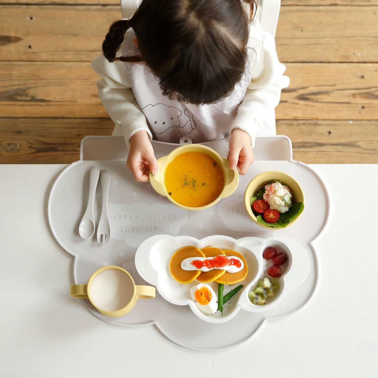 食べこぼしをキャッチ! mamamanmaプレートセットにぴったり、ライトグレーのお食事マット。