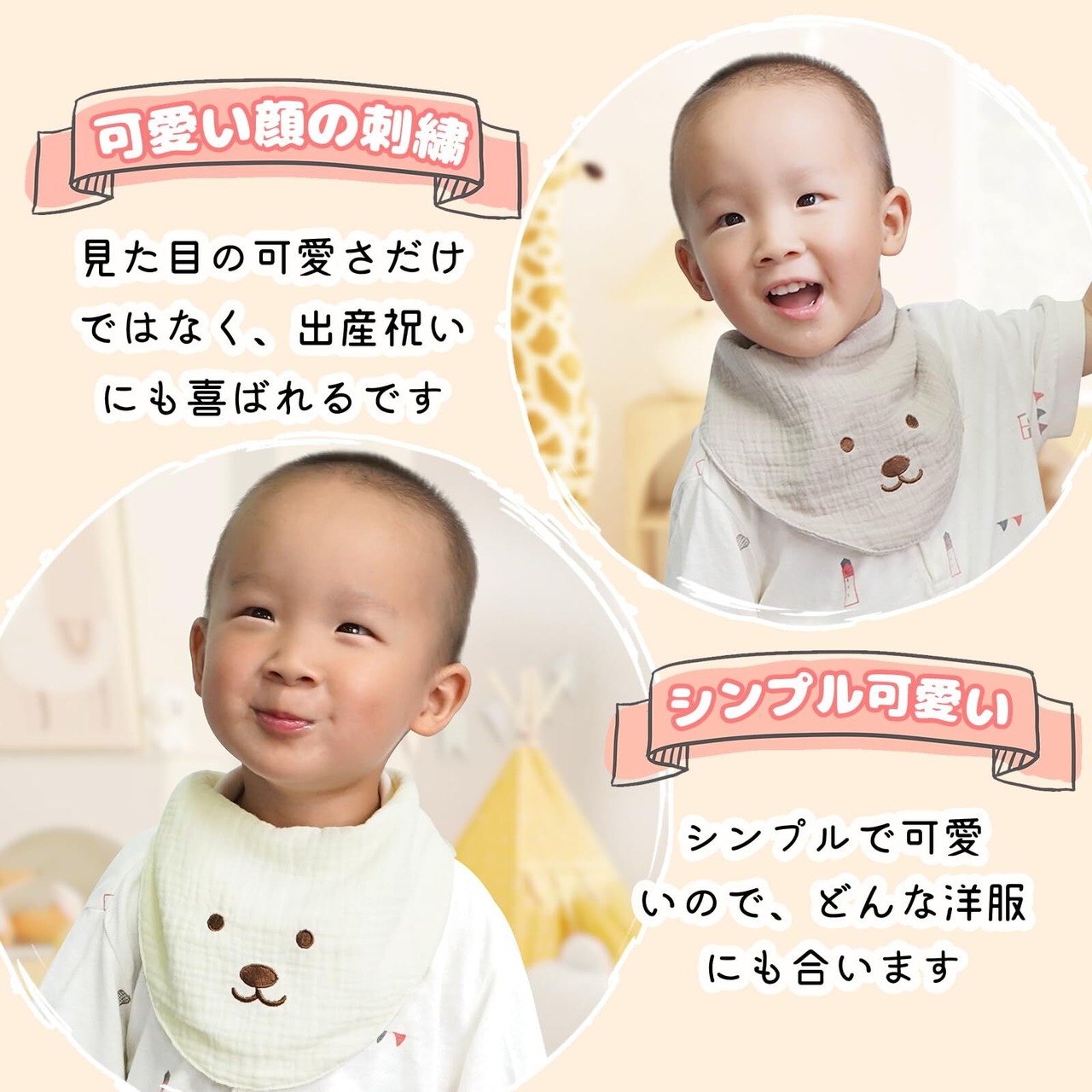 おしゃれなバンダナ形で、お洋服との相性もバッチリです!男の子にも女の子にもぴったりです。5枚セットで、毎日の使用に便利です。