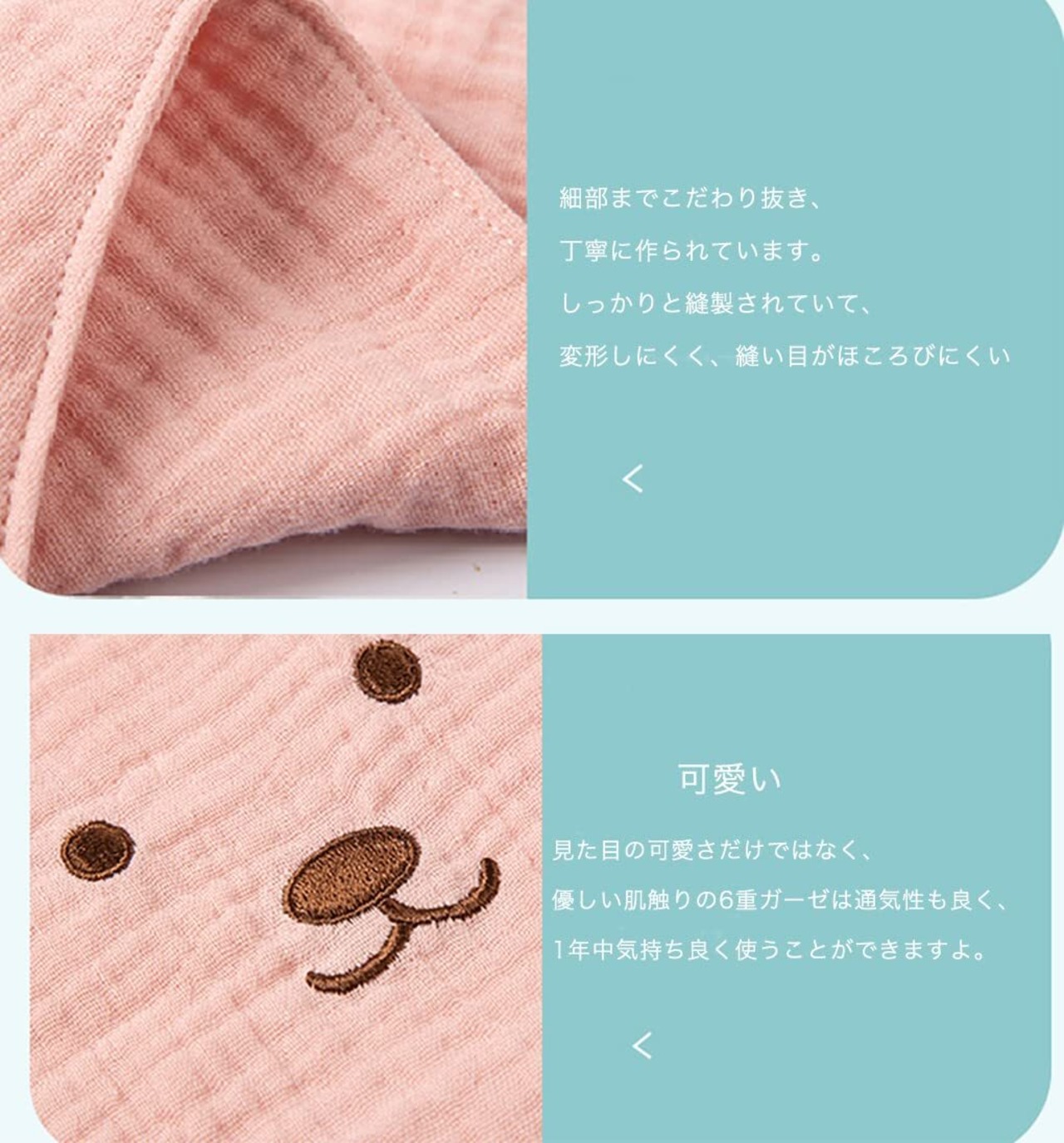 [6重ガーゼ]綿100%の6重ガーゼ素材を使用しており、軽くて通気性が良く、洗濯後もすぐに乾きます。