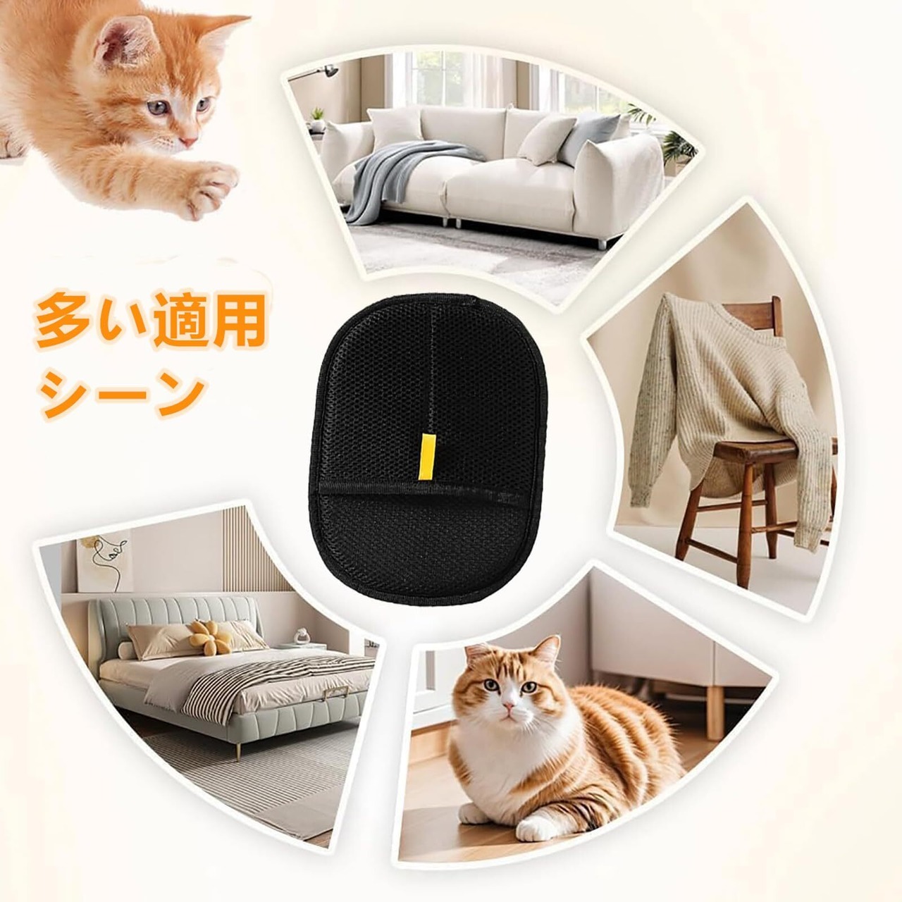 【効率的な掃除】このグローブを装着し、前後にスワイプするだけで、ペットの毛が瞬時にストリップ状に集まります。大きな面積を迅速かつ効率的に掃除でき、手間をかけずに家を毛のない状態に保つことができます。