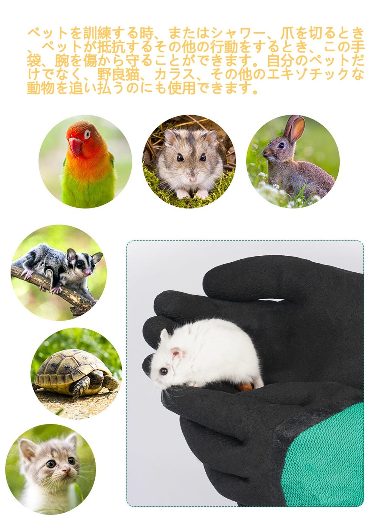 ペットを訓練する時、またはシャワー、爪を切るとき、ペットが抵抗するその他の行動をするとき、この手袋、腕を傷から守ることができます。