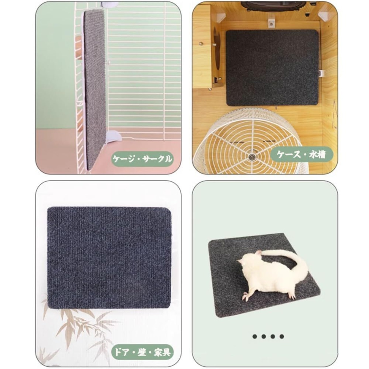 ひっかき防止シートとして貼り付け。飼育ケースや壁、家具の表面にも貼り付けるので、乗って遊んでくれるフクモモの爪を自然に削る爪とぎおもちゃ。使い方さえ工夫すれば爪切りの回数を大幅に減らし。