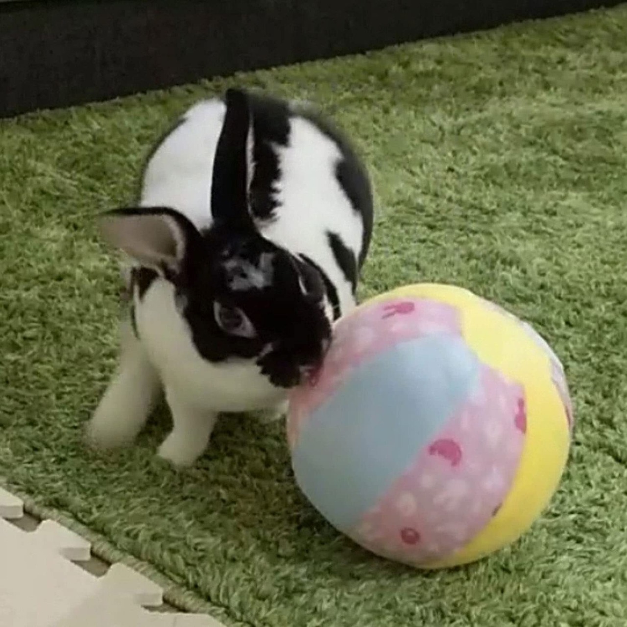 ●ぬいぐるみのように柔らかく、よく転がるから飽きずに遊べる、大きなボールのおもちゃ。●お鼻でツンツンしたり、ほっぺでコロコロしたり、乗っかったり、運動不足の解消にも役立つアイテム●小さなボールでは物足りなかったウサちゃんはもちろん、小さなウサちゃんが大きなボールで遊ぶ姿もかわいい。●丸いフォルムは新しい仲間ができたように遊ぶ。●手にもって動かしてみたり、うさちゃんと一緒にコミュニケーションもできるおもちゃ。