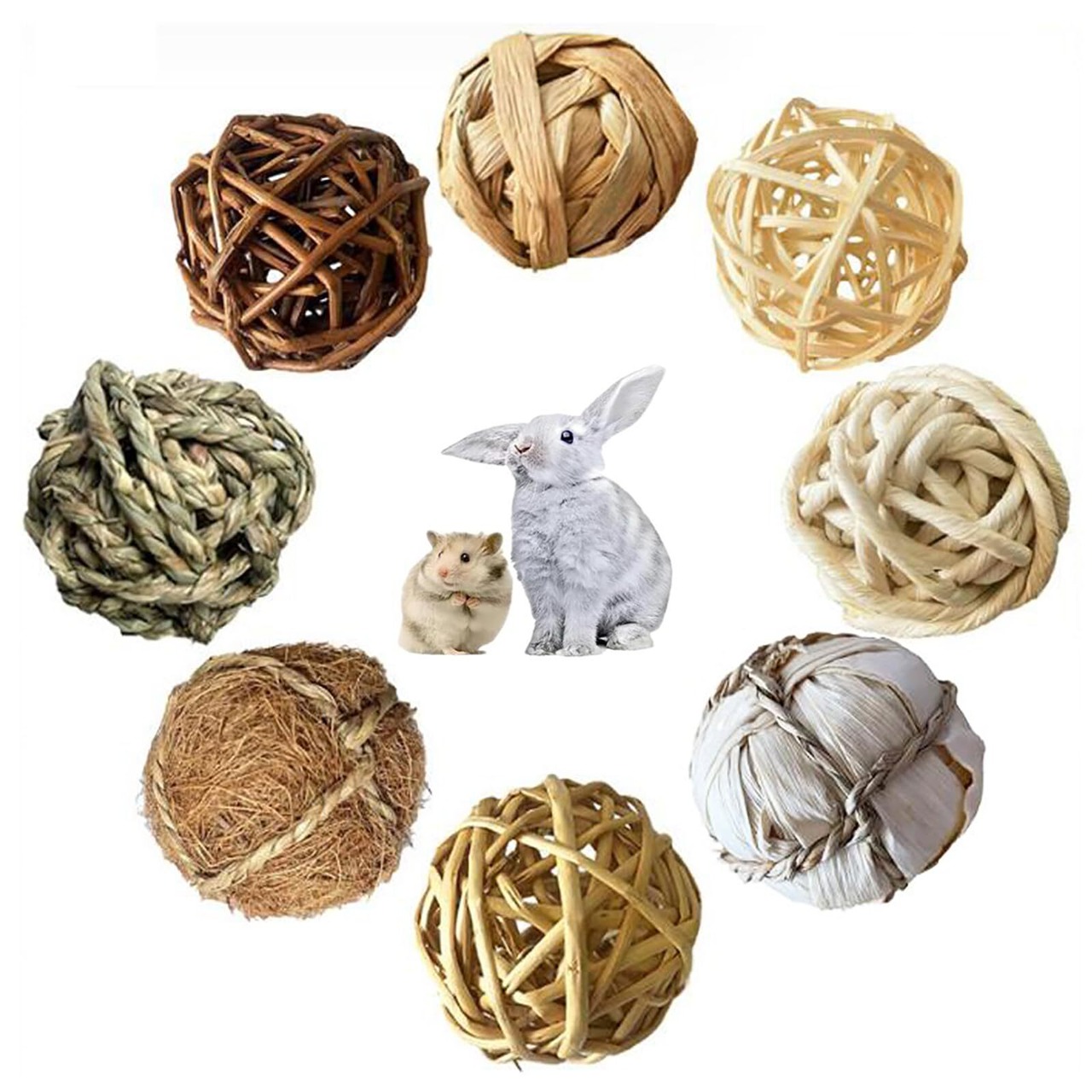 GOODCHI うさぎ ハムスター おもちゃ 草編みのボール ミニ 天然素材 無添加 ボール 噛む 運動不足解消 ストレス解消 小動物用 8個セット