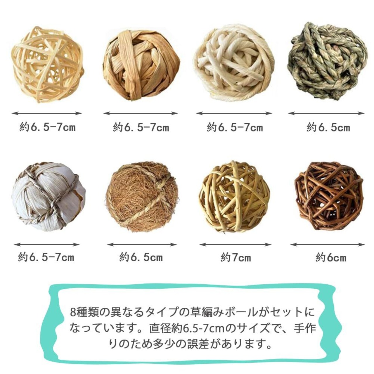 【セット内容】8種類の異なるタイプの草編みボールがセットになっています。