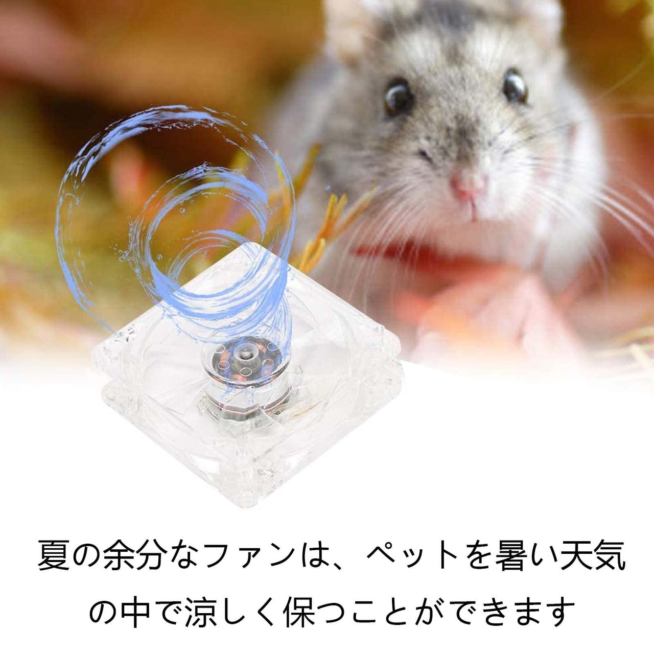 【涼しく通気性抜群】ハムスター扇風機は絶えずスムーズな風力を提供し、ハムスターケージ内の臭いを素早く吹き飛ばし、ハムスターケージを無臭、清潔、新鮮に保ちます。 静音設計、騒音が発生せず、ハムスターの休息を邪魔しません。
