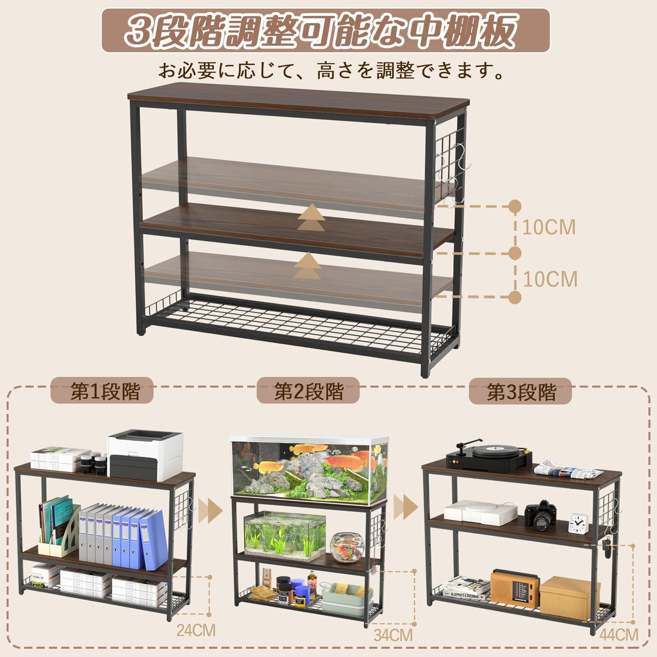 DEWEL 水槽台 90cm水槽用 水槽 台 ラック 棚 スタンド 高さ三段階調整可能 水槽棚 総耐荷重約155kg 面取り加工 水槽ラック フック/アジャスター付 3段 水槽棚 水槽スタンド 幅90 奥行き30 高さ70cm 木製