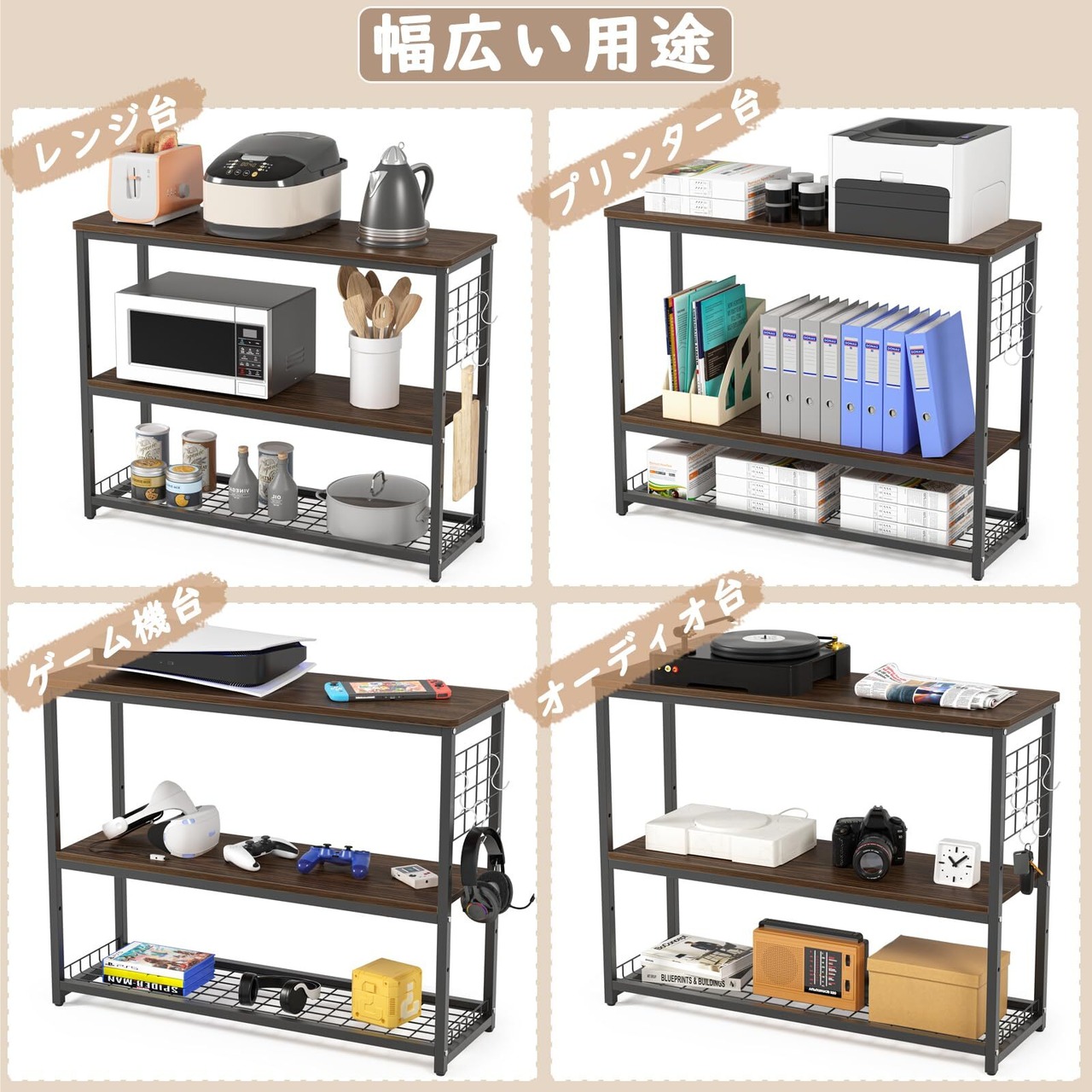 【製品仕様】◆サイズ:幅90cm 奥行30cm 高さ70cm。◆製品重量:11.9kg。◆耐荷重:総耐荷重約155kg(天板:100kg、中棚板:50kg、下棚板:5kg)。◆材質:パーティクルボード/メラミン化粧板/金属フレーム/スチール/粉体塗装。