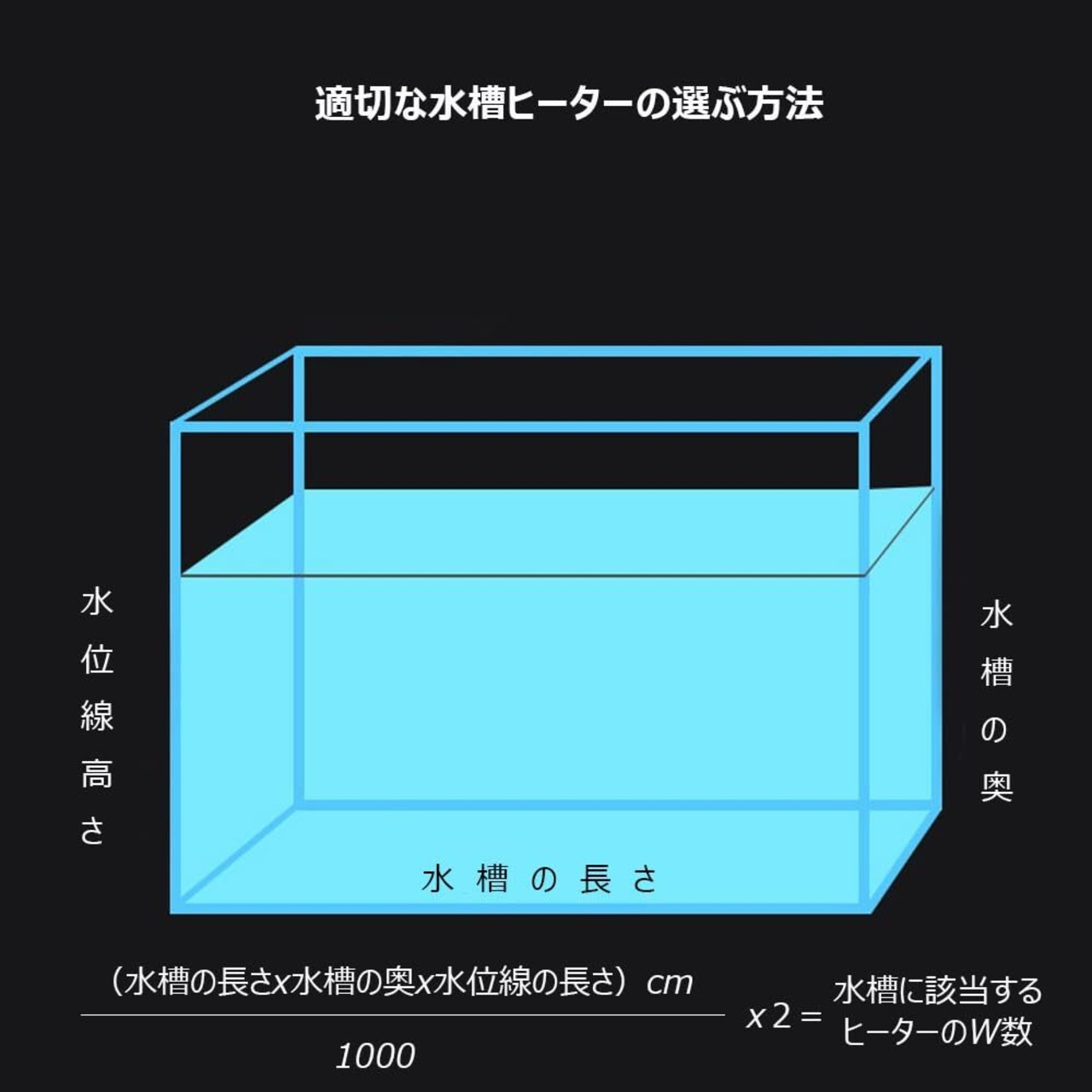 サーモスタット付き機能 水槽用ヒーター:サーモスタットは水槽の温度を感知して、水温が低ければヒーターをON、高ければOFFにする働きがあります。ご設定された温度で温度管理しながら、加熱します。水温計は、ヒーターから離れた位置に設置しましょう(正確に温度をはかれます)
