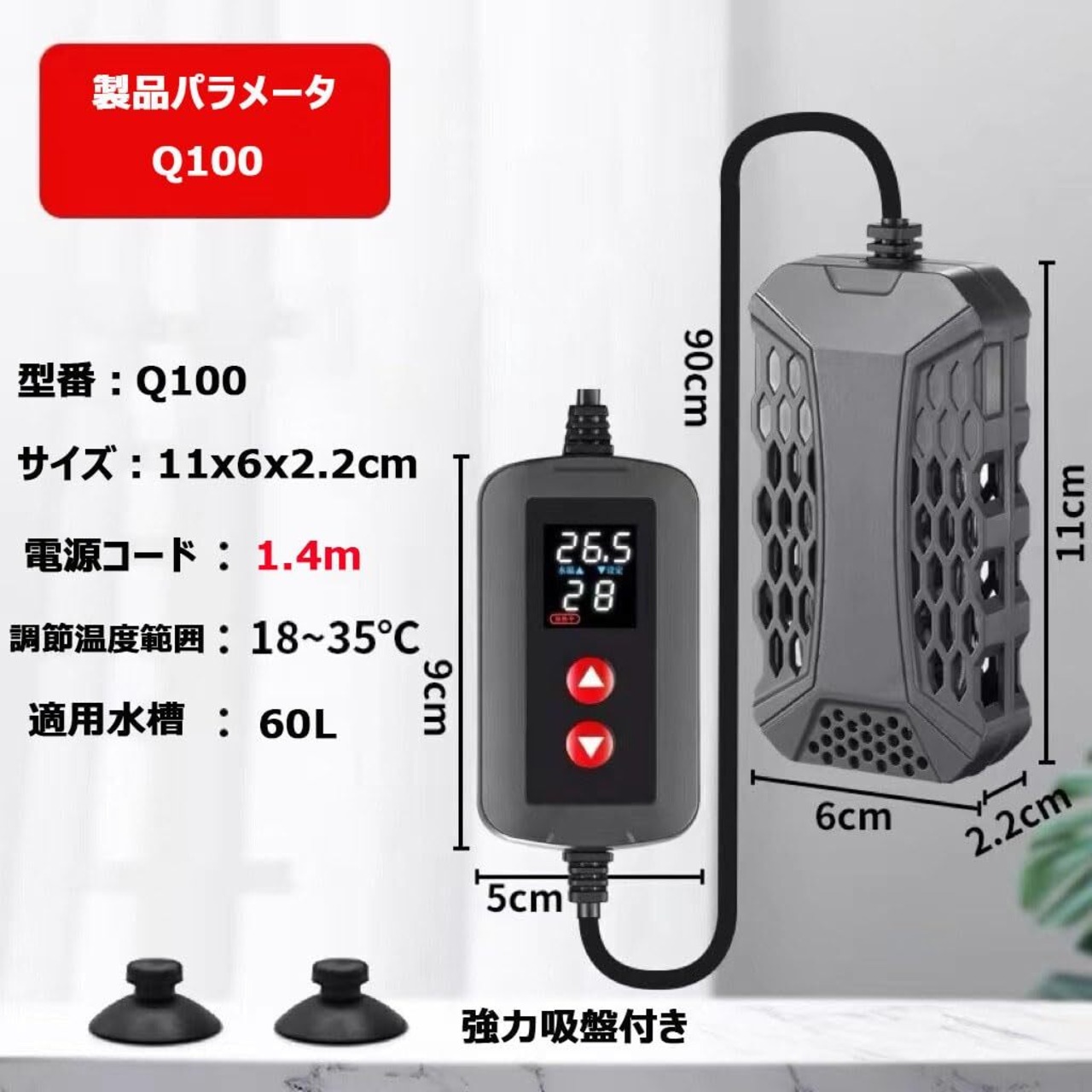QOSEREN 水槽 ヒーター サーモスタット付き 金魚 ヒーター 温度調節 コントローラー 18-35度調整 リアル温度表示 縦横設置 セーフカバー 設置吸盤付き 自動恒温 熱帯魚 金魚 カメ 水槽用 100W