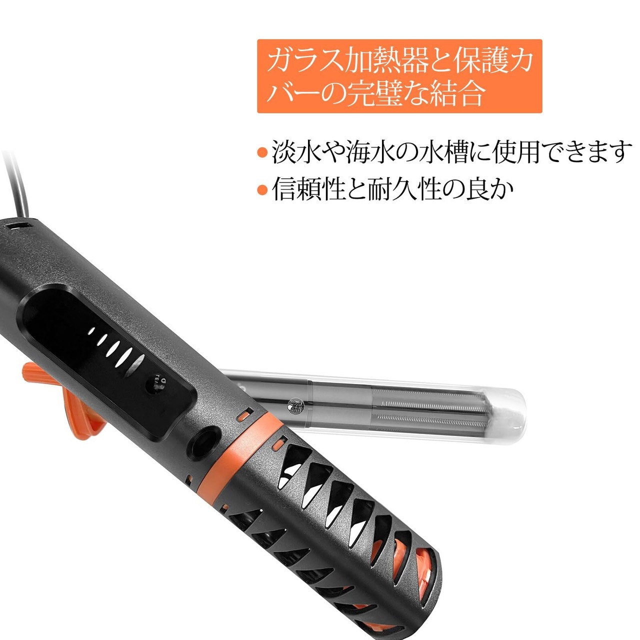 「二重保護」:より厚いガラスを使用することに加えて、ヒーターチューブを包む取り外し可能な保護カバーを採用し、二重の安全性がある。このカバーは三角プリズムデザイン、現代性にあふれ、美しい、水槽内のスペースを節約します