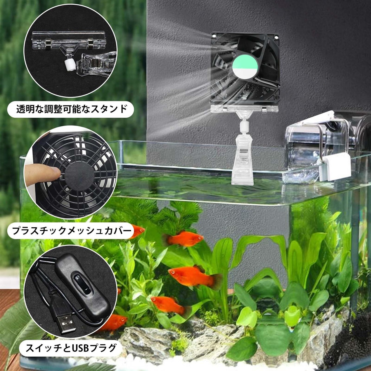 PAVIKE 水槽用冷却ファン アクアリウム冷却ファン 水槽用ファン 水槽 クーラー ファン 水槽扇風機 水温昇進防止 魚飼育用 USB給電式 水族館チラー 爬虫類 ハムスター 小動物など用 軽量 角度調節可能 魚夏対策