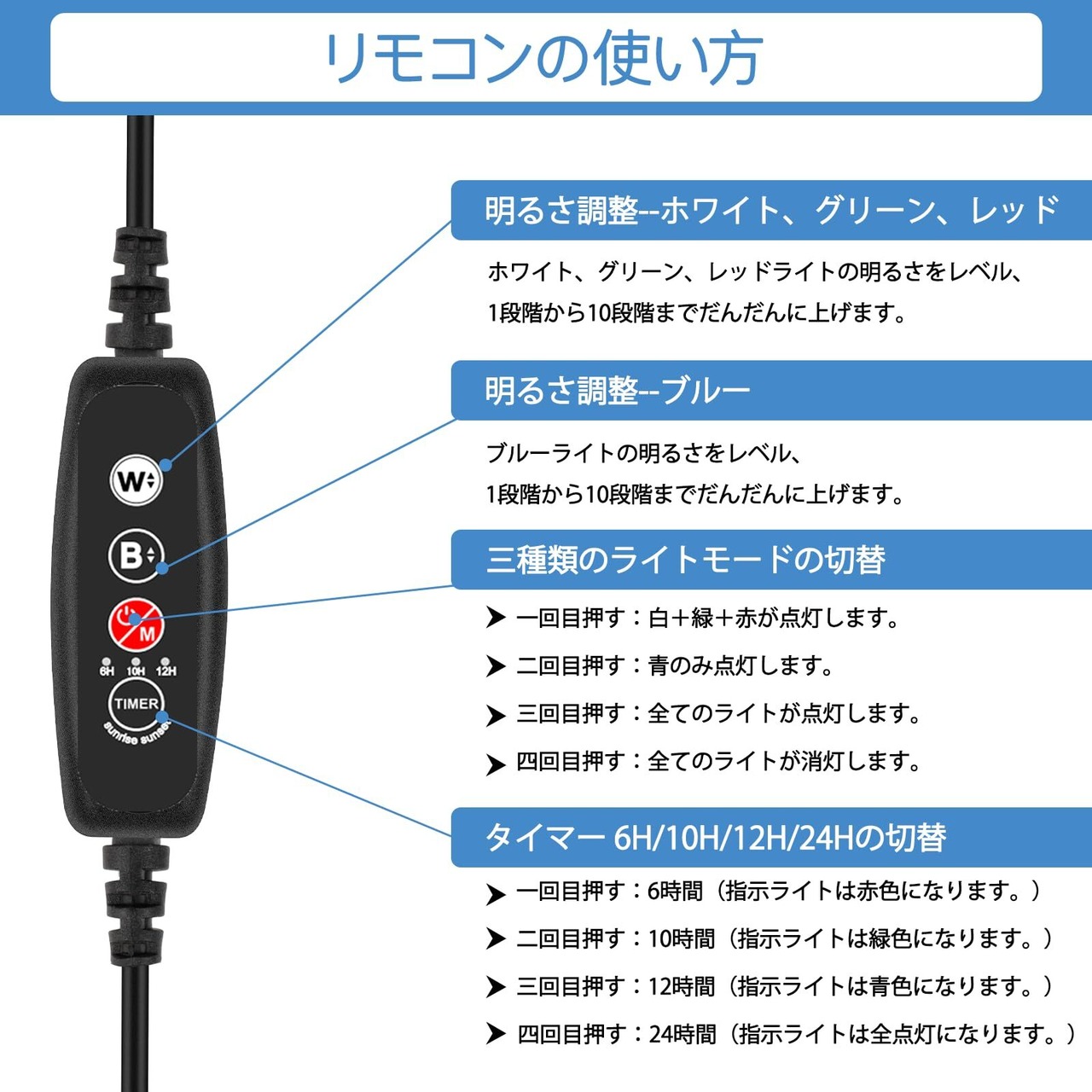 【四つのタイマーモード】LED水槽ライトは24時間定時モードを設定でき、日の出と日の入りを真似するように、一日中ゆくっり明るくなったり、暗くなったりします。もちろん、6時間/10時間/12時間でタイマーも設定できます。