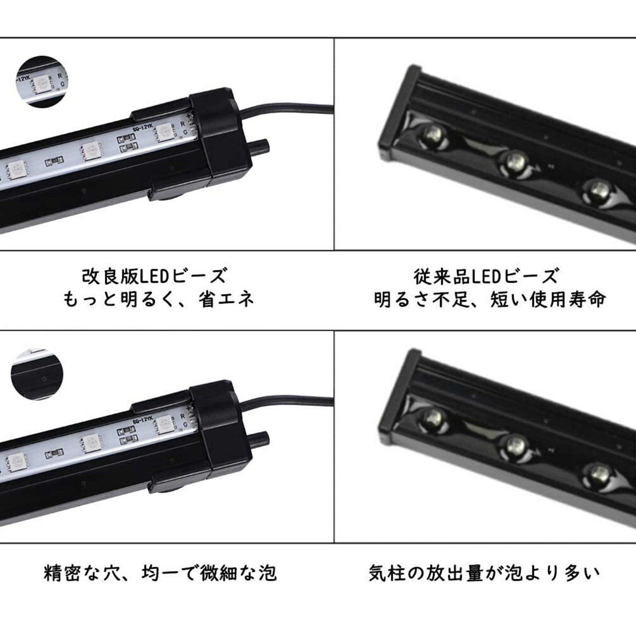 LEDGLE 気泡ライト 12LED 酸素供給 RGB七変色 水陸両用 水槽ライト 110V-240Vに対応 4.1W 水族館エア盤 CO2拡散器 IP68防水 水族館・観賞魚・水草・水槽用