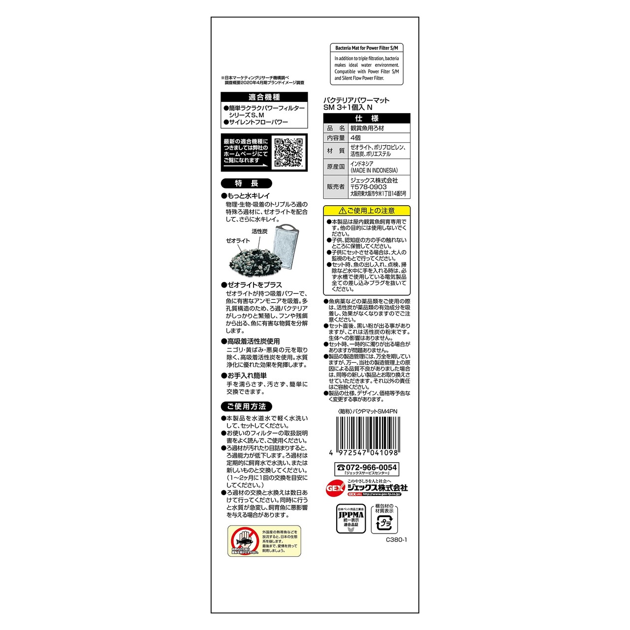 ジェックス GEX AQUA FILTER バクテリアパワーマットSM 3+1個入N 交換ろ過材 簡単ラクラクパワーフィルター サイレントフローパワー