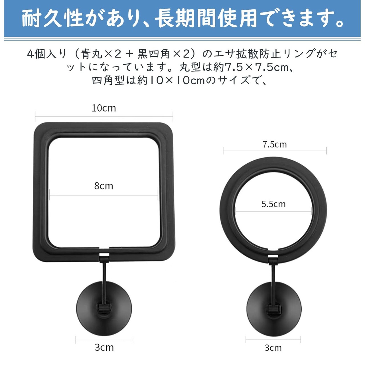 MAEXUS 餌拡散防止リング 4個入り エサ拡散防止 吸盤付き水槽用品 飼育用餌拡散防止リング 水族館エサやり道具 水槽エサの拡散を防ぐ 丸型、角型