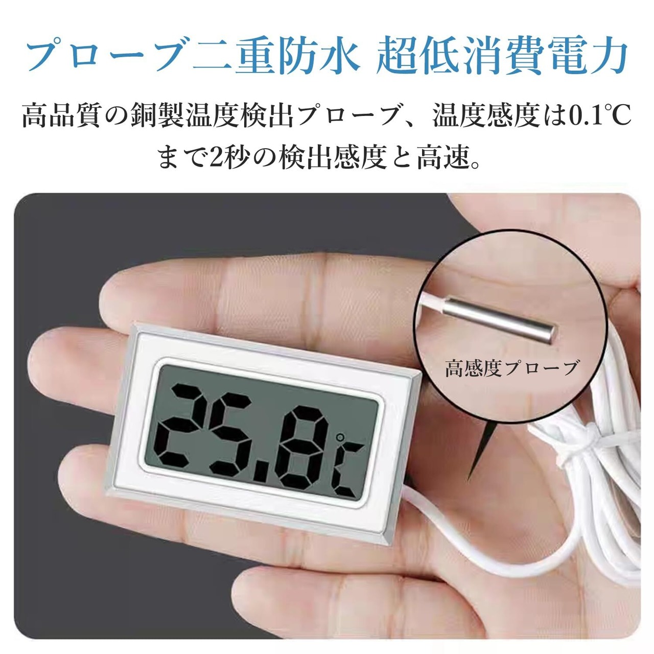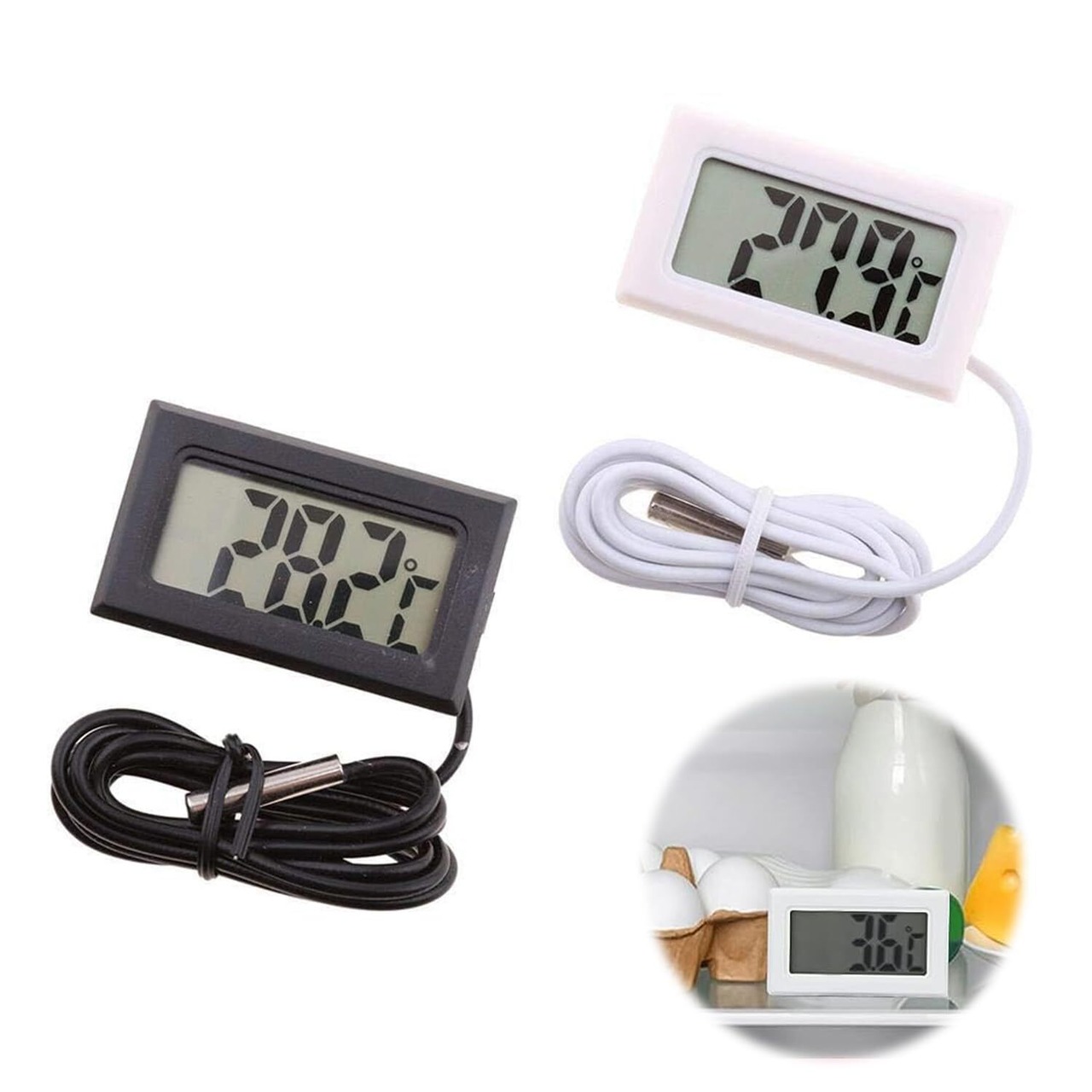 デジタル温度計 2個セット 水温計 水槽, 防水温度プローブ -50℃~110℃ 冷蔵庫 魚タンク 爬虫類 水族館 栽培用 温度計 小型 簡単便利 (ブラック・ホワイト)
