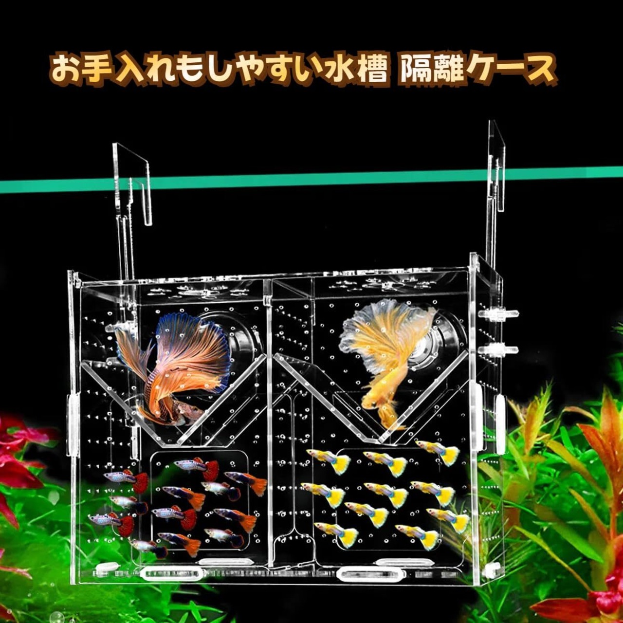 Yurika 産卵ケース 水槽 隔離ケース 2in 1 凑 産卵後の休養用 グッピー 稚魚 隔離 飼育保護水族館アクセサリー 取り付け簡単 隔離水槽-10x10x15cm