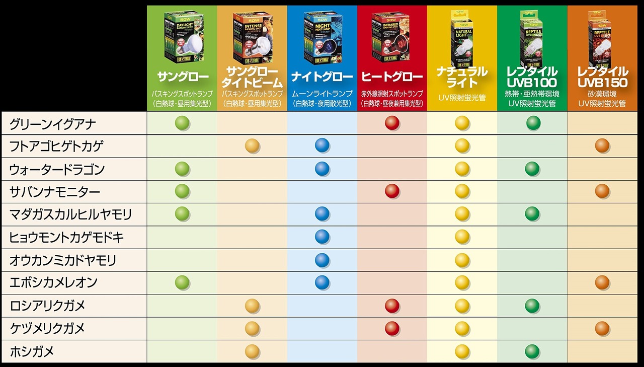 昼間の強い太陽光をイメージした明るい光を狭い範囲に集中的に照射することで、爬虫類の為のバスキングエリアを作る