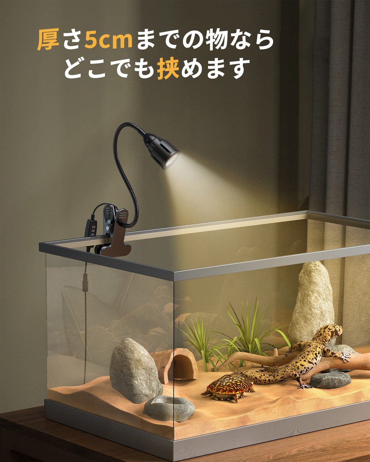 【省エネLEDライト・多シーン対応】爬虫類用UVライトは蛍光灯の代わりにLEDを採用し、飼育環境を省エネに!従来の蛍光灯と比較して、消費電力を86%以上削減します。ランプは柔軟な素材で作られており、360度回転調整でき、頑丈な大きなクリップはボックス/キャビネット/テーブルの端など、さまざまなシナリオに簡単に取り付けることができます。