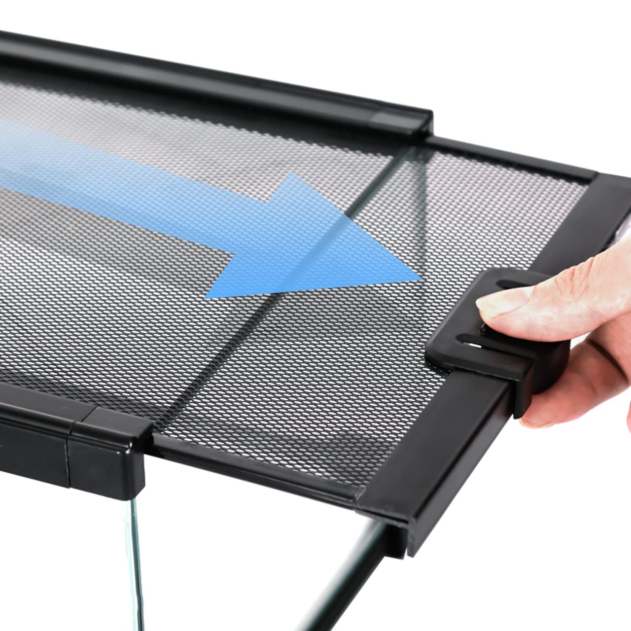 通気性の良い上部のメッシュカバーにより(餌入穴付き)、UVBおよび光の透過が可能になります