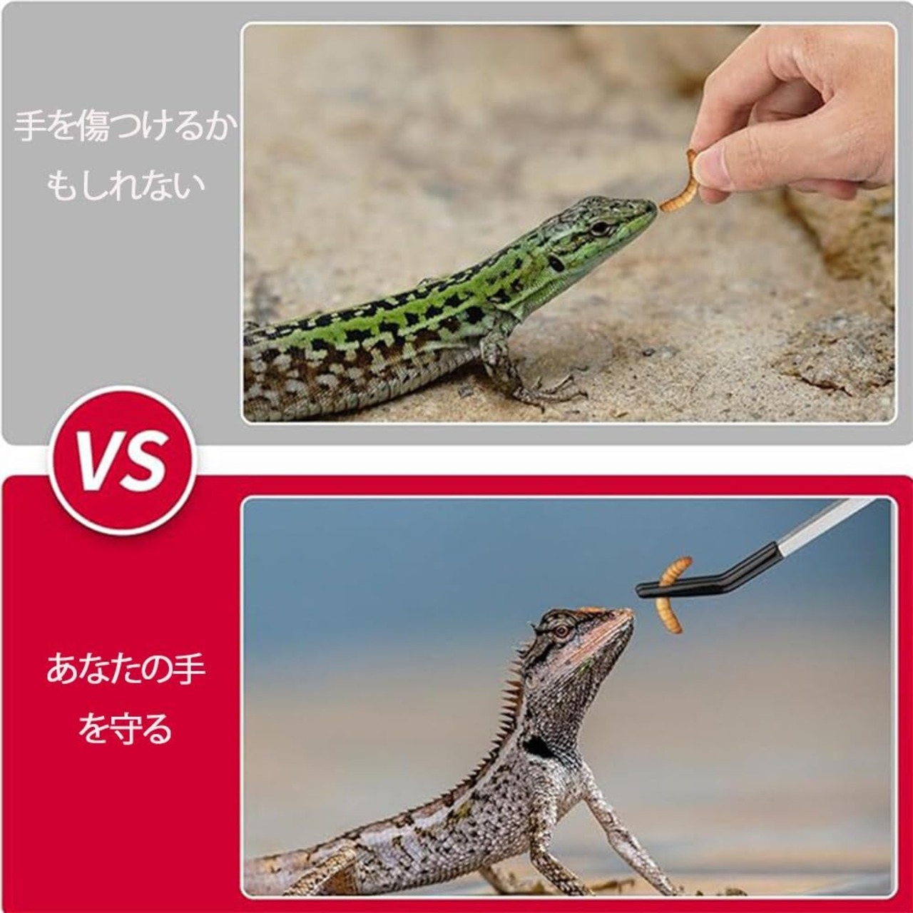 3.【便利な超ロング設計】約27cmの長さで、大型の水槽やテラリウムでも手を濡らさずに餌やりが可能。トカゲ、ヘビ、カメなどの飼育に最適です