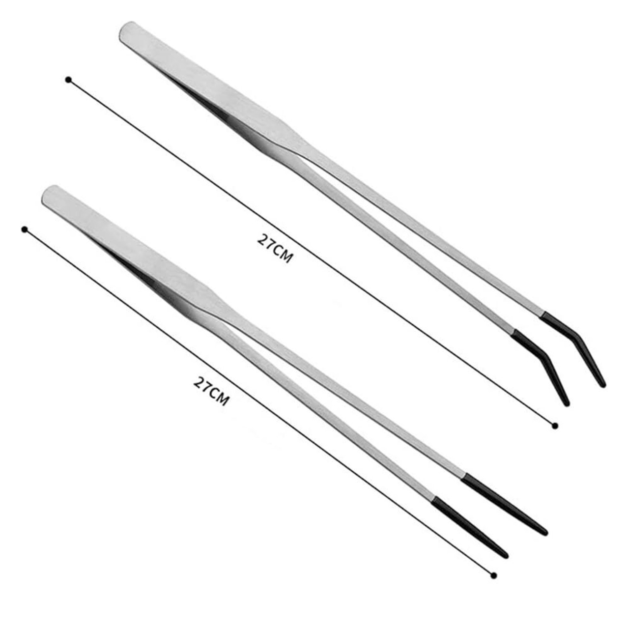 1.【商品仕様】27 CMのストレートヘッドとエルボロングピンセット各1本、ブラックゴムヘッド付き。