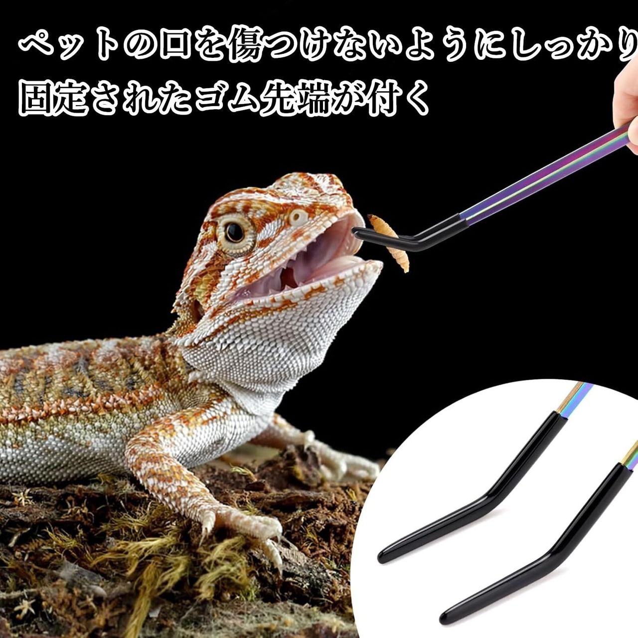【曲型と直型の組み合わせ】曲型と直型の両方の餌やりトングには、ペットの口を傷つけないようにしっかり固定されたゴム先端が付いています。ビアデッドドラゴンをはじめとする爬虫類の飼育ケージに最適で、ラバー先端は餌や装飾品をつかみやすくしてくれます。