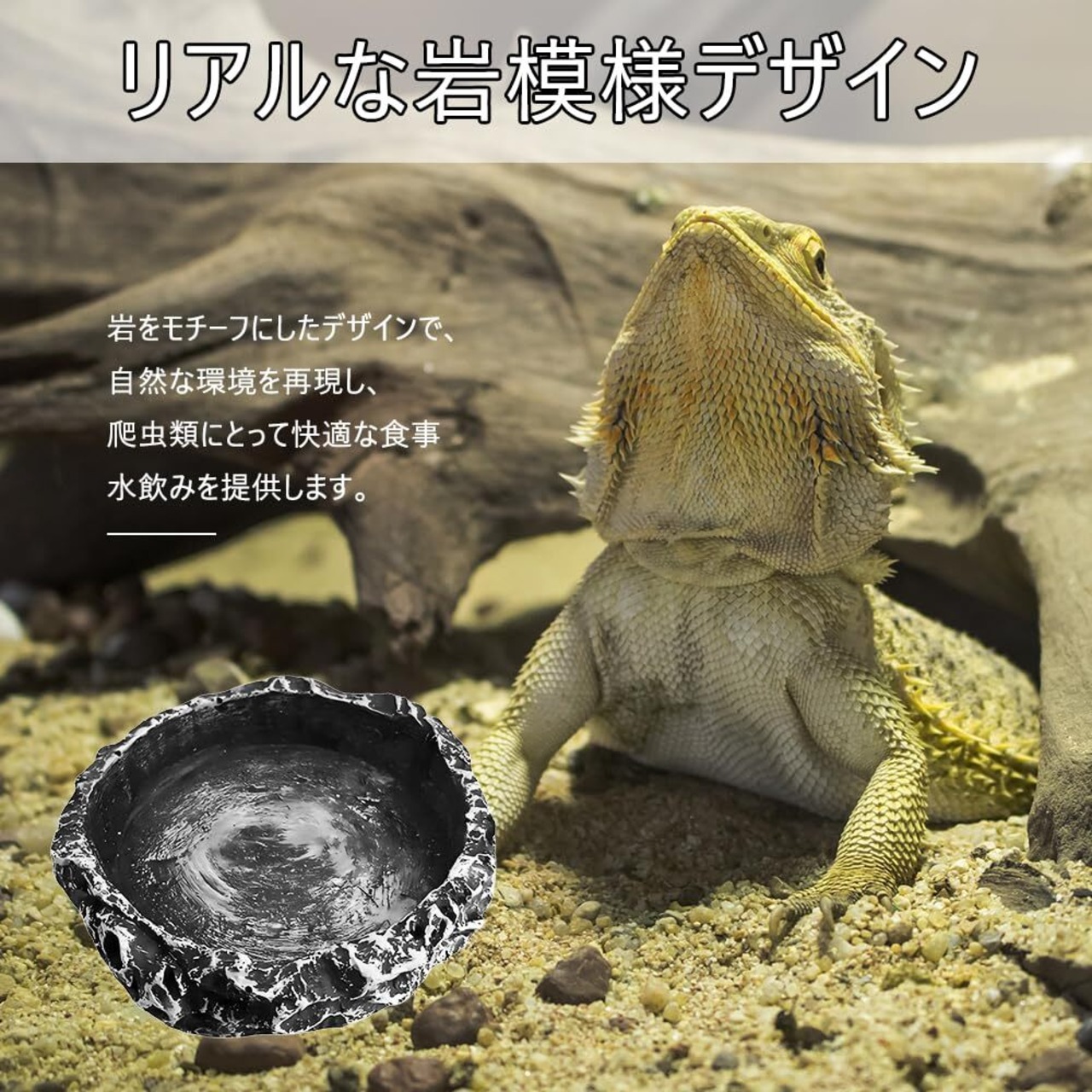 【リアルな岩模様デザイン】岩をモチーフにしたデザインで、自然な環境を再現し、爬虫類にとって快適な食事・水飲みを提供します。このリアルな外観は、あなたの爬虫類や両生類の飼育環境を美しく装飾することができます。