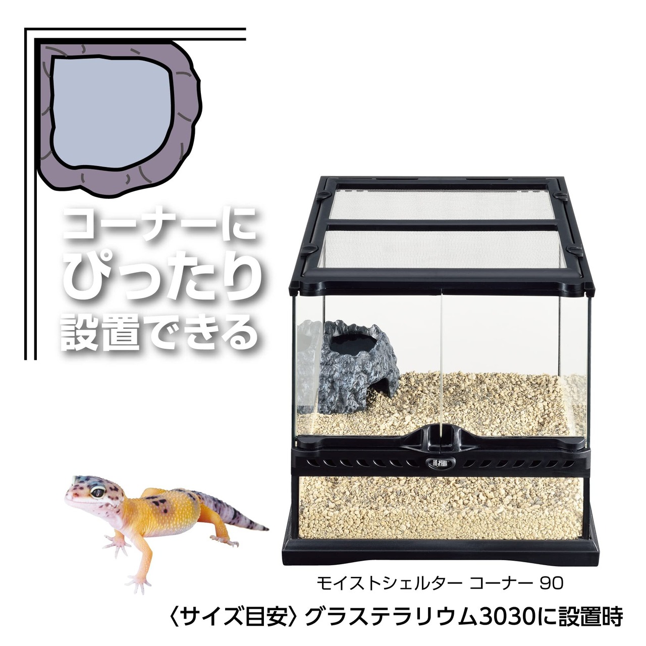 EXO TERRA エキゾテラ GEX EXOTERRA モイストシェルターコーナー 90 爬虫類用シェルター 湿度維持 脱皮サポート 陶器製 隠れ家 コーナータイプ 小型爬虫類 幼体たっぷり貯水部 W9×D9×H8cm