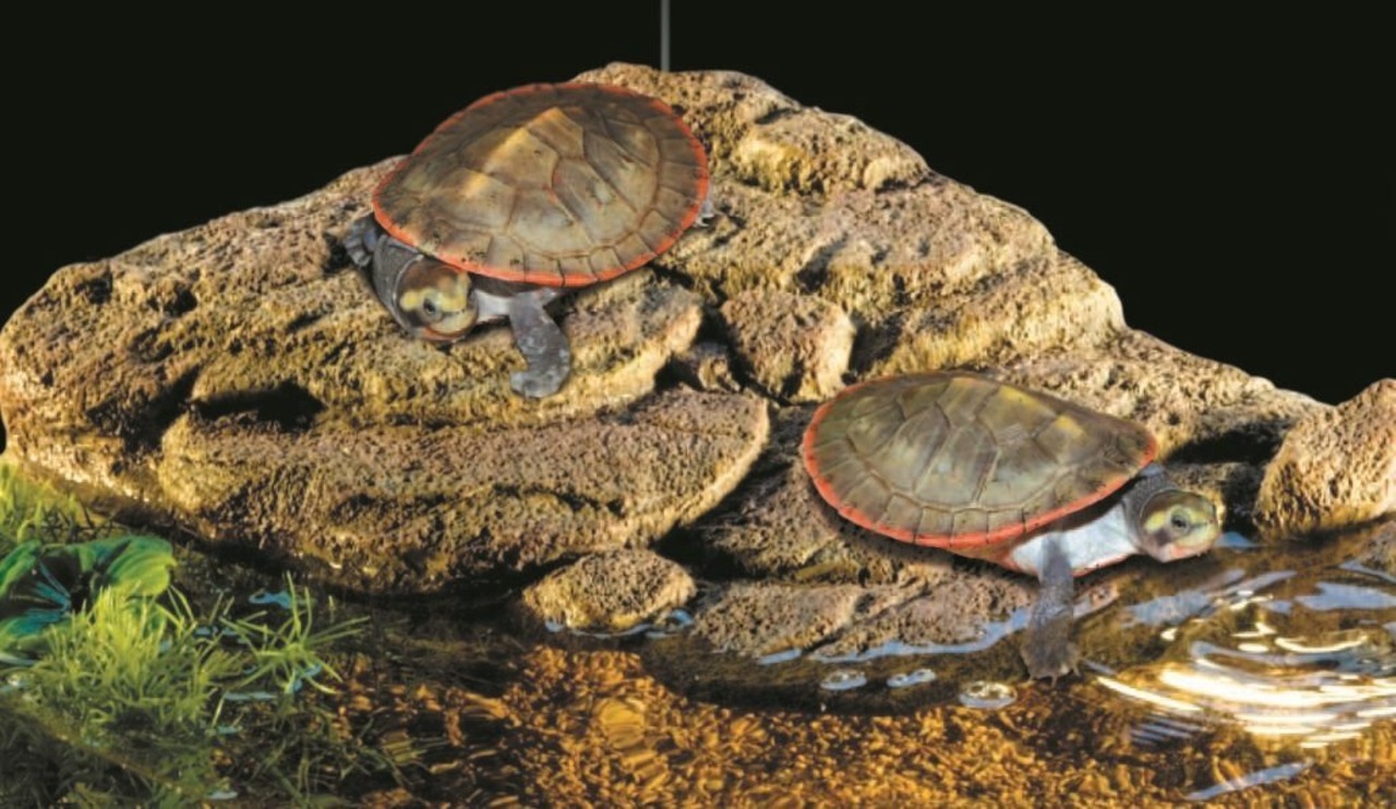 水棲ガメや両生類の飼育に最適の、水位に合わせて上下する浮島。 コーナーにぴったり設置できるのでレイアウトの邪魔になることも仔ガメが挟まることも無い安全な島。